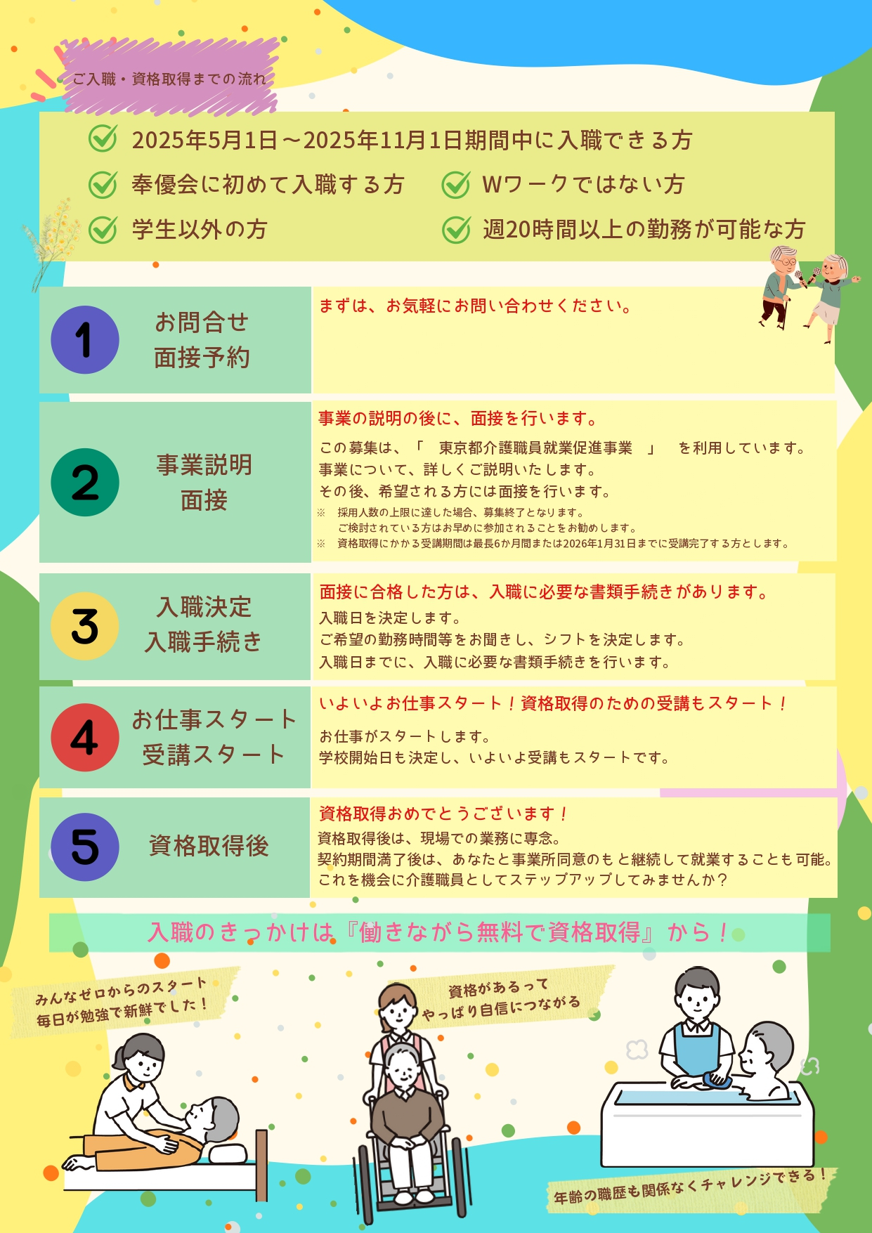 働きながら資格取得を目指せる、「東京都介護職員就業促進事業」についてご紹介させていただきます。