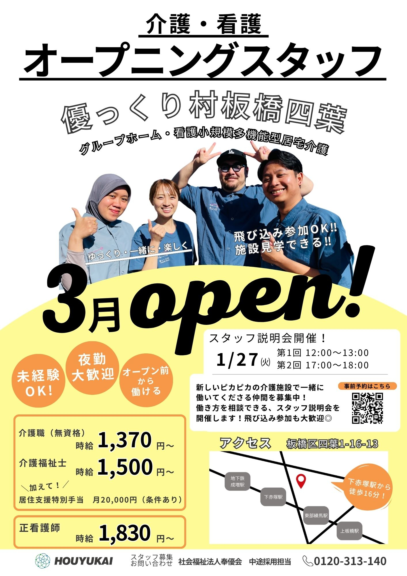 オープンに伴い、優っくり村板橋四葉では、一緒に働いていただける仲間を募集しております!!