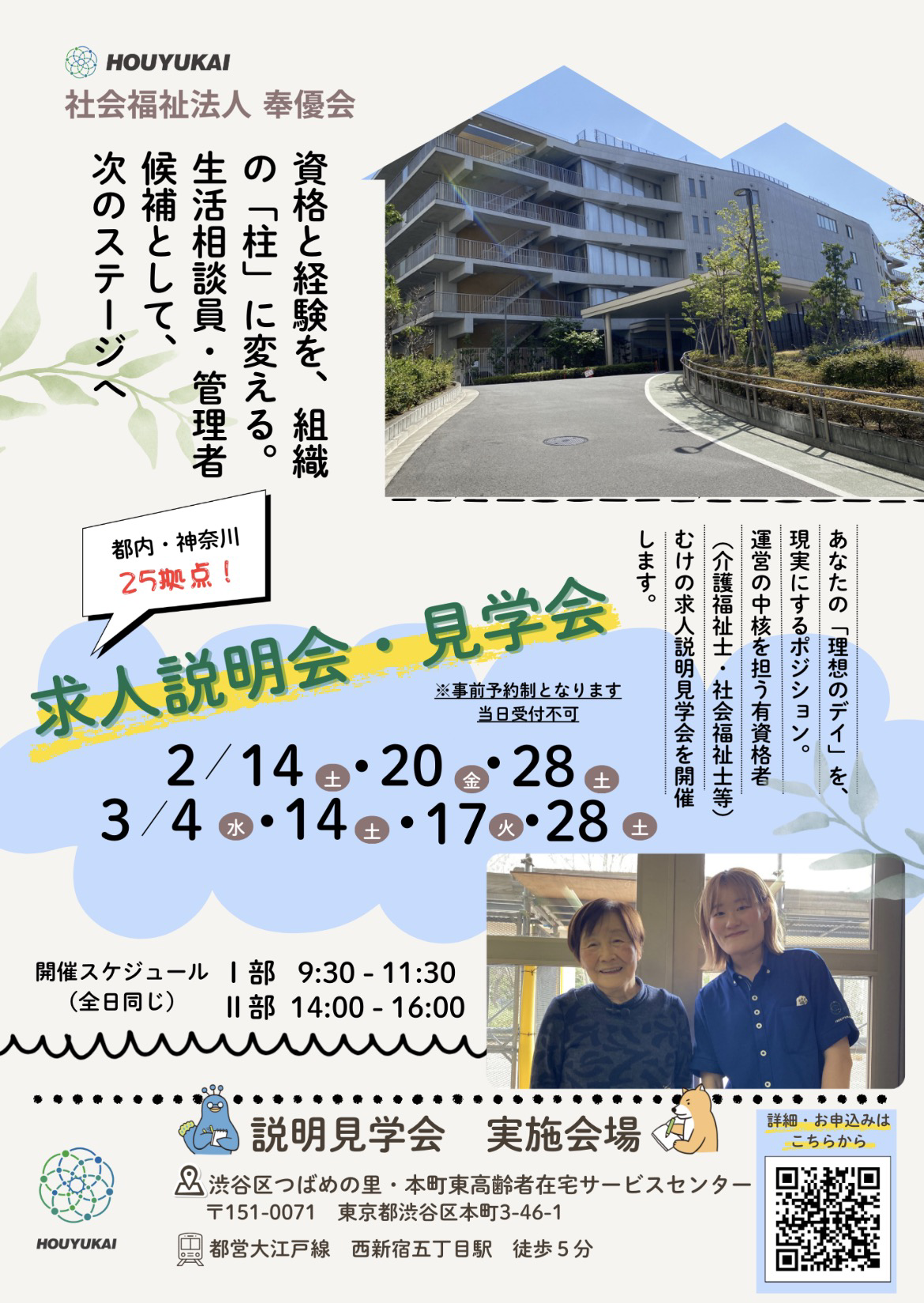 【常勤スタッフ】として、【生活相談員や管理者候補】に興味がある方向けの説明会です。
