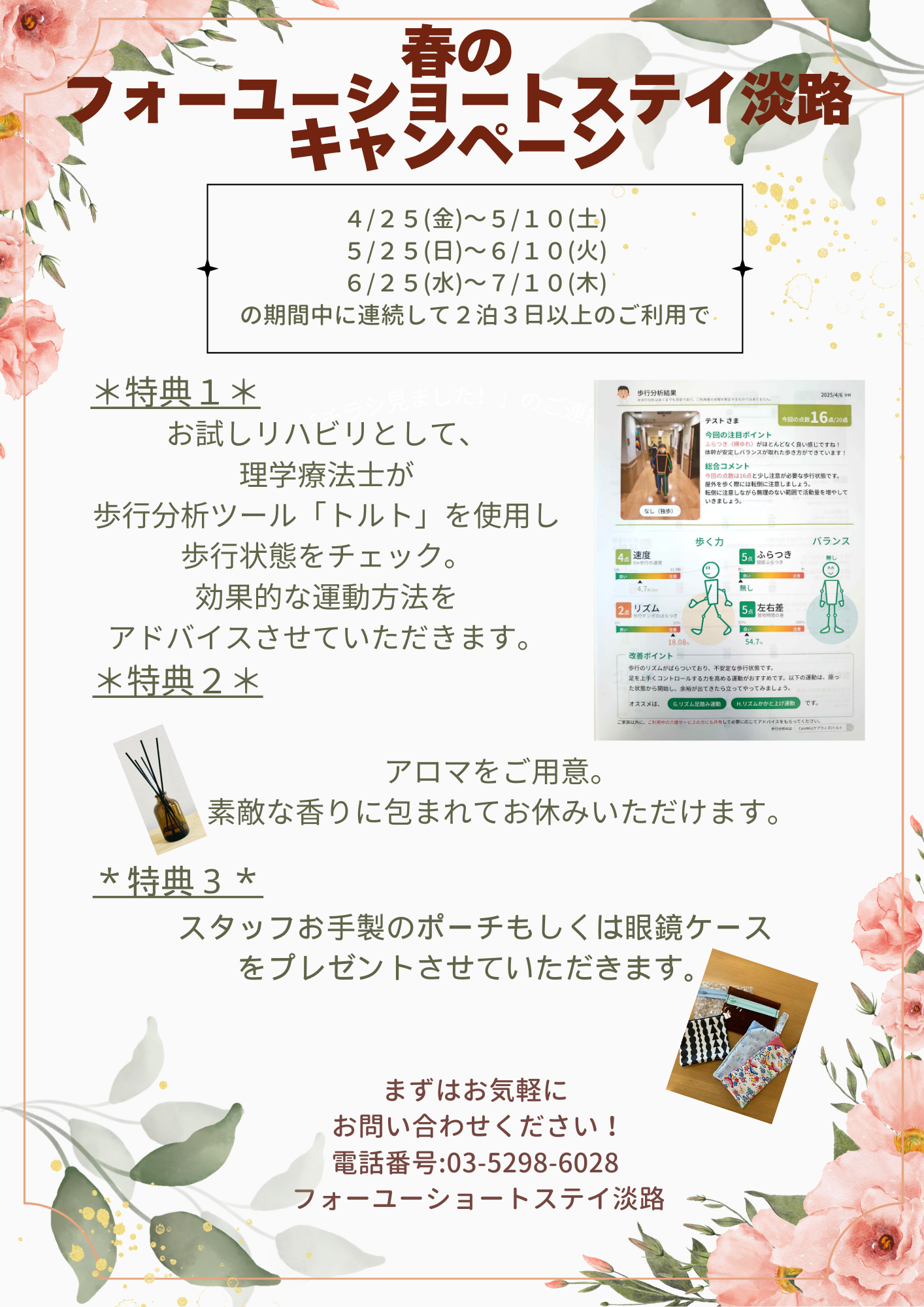 フォーユーショートステイ淡路の魅力をお届け~春のキャンペーン~