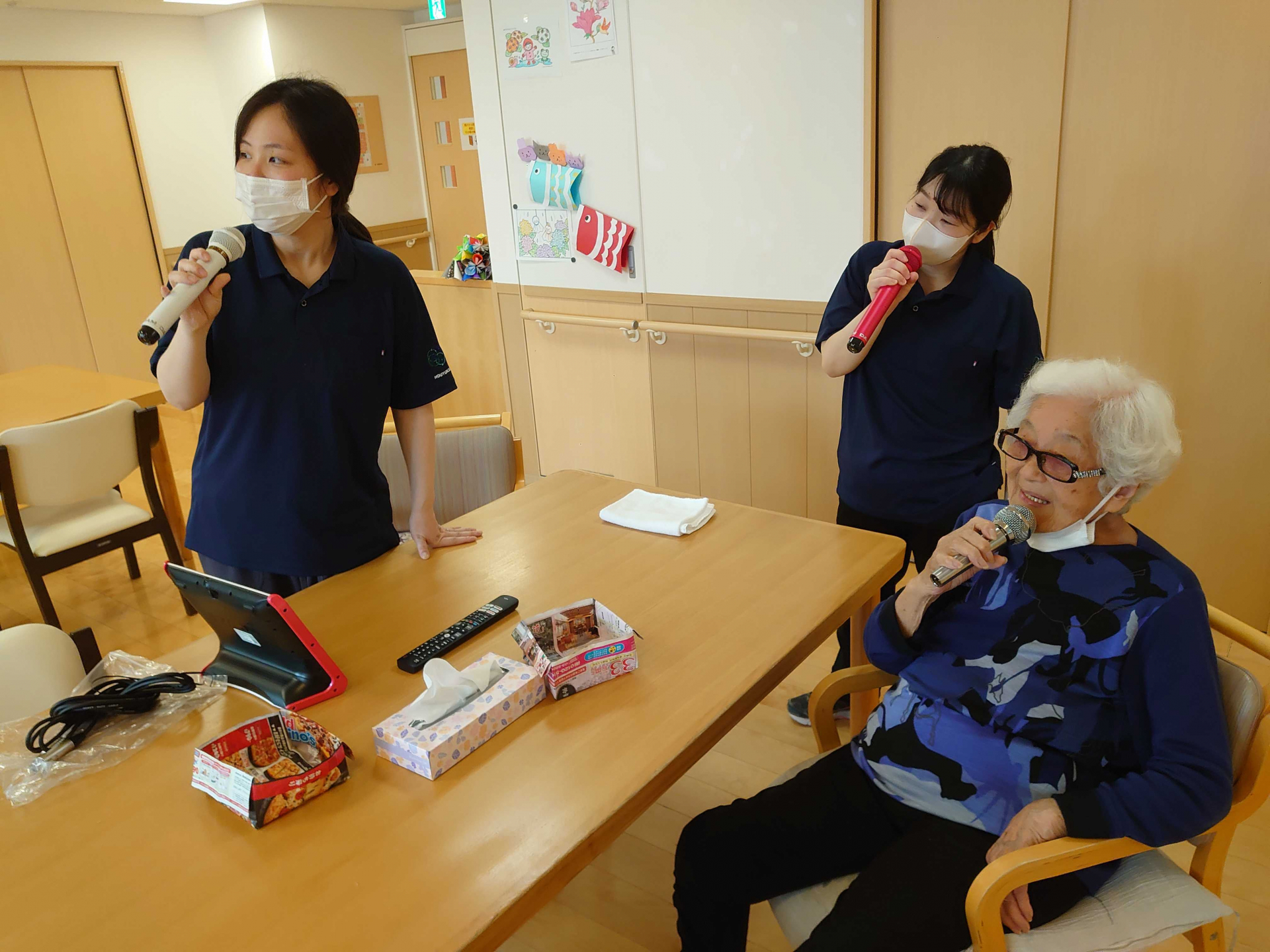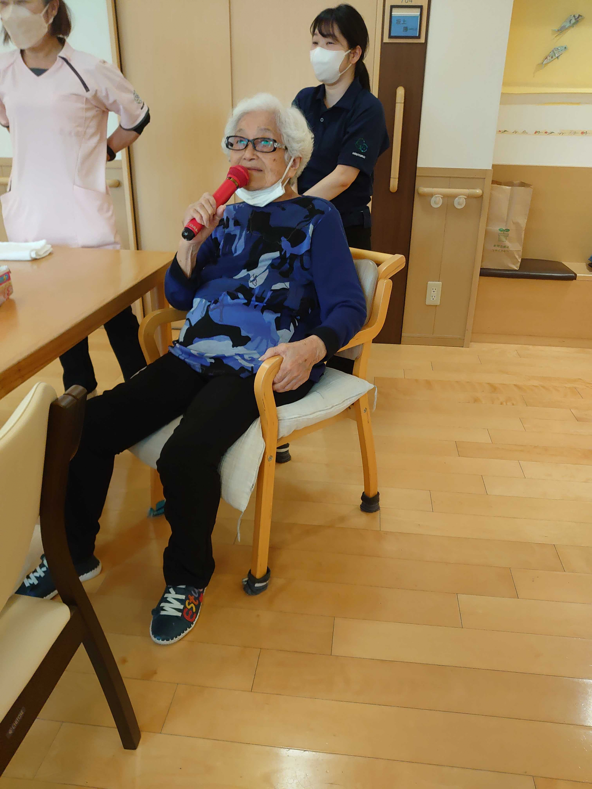 そんな中突然に「あなたなんか歌ってよ!」「私聞くのが好きなのよ!」と職員にリクエストが…。