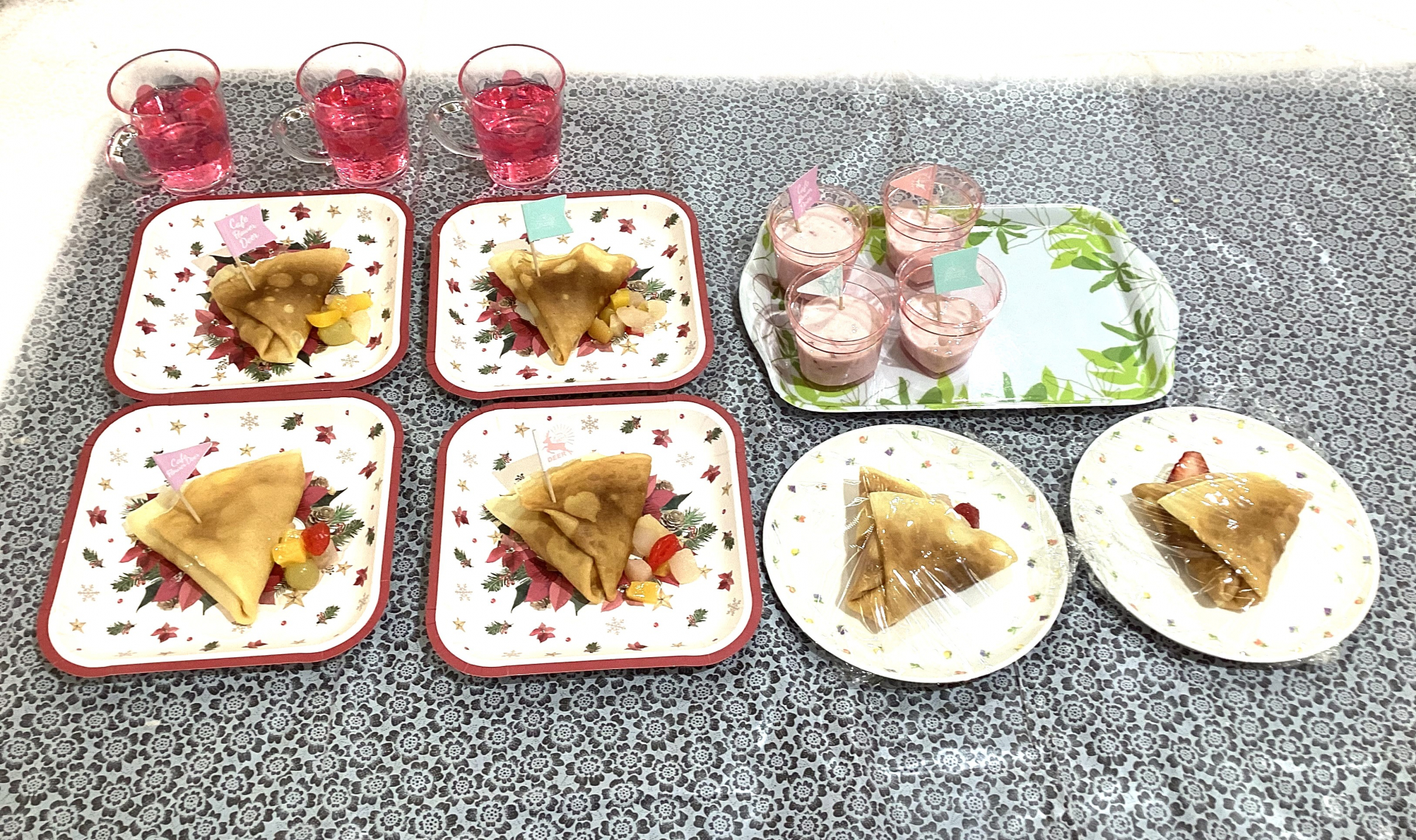 おやつは職員がクレープとババロアを手作りしました、トッピングをご利用者さまに