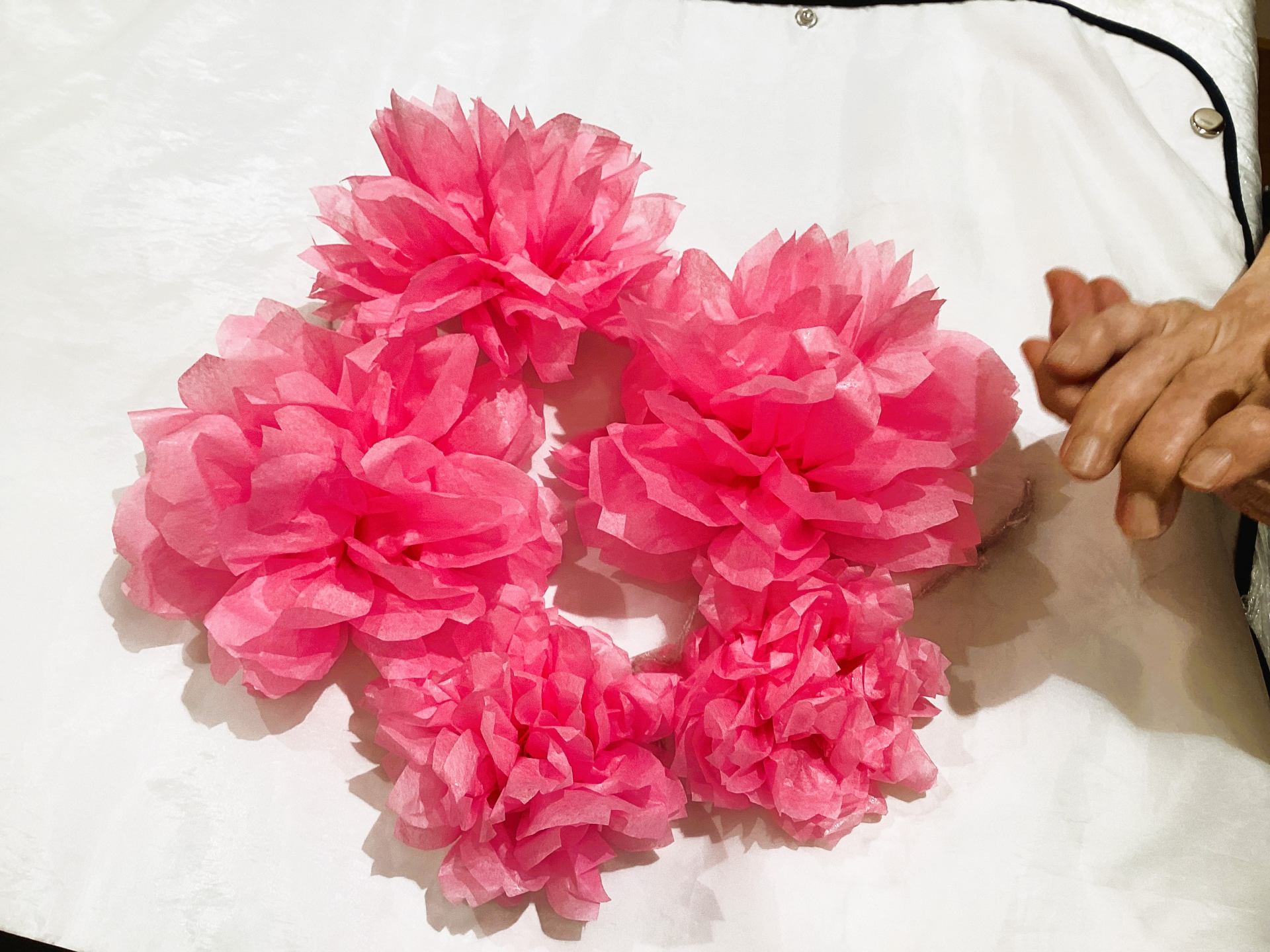 先日壁画のお花を片付けていた所、ご入居者さんから「ちょっとそれかして」と
