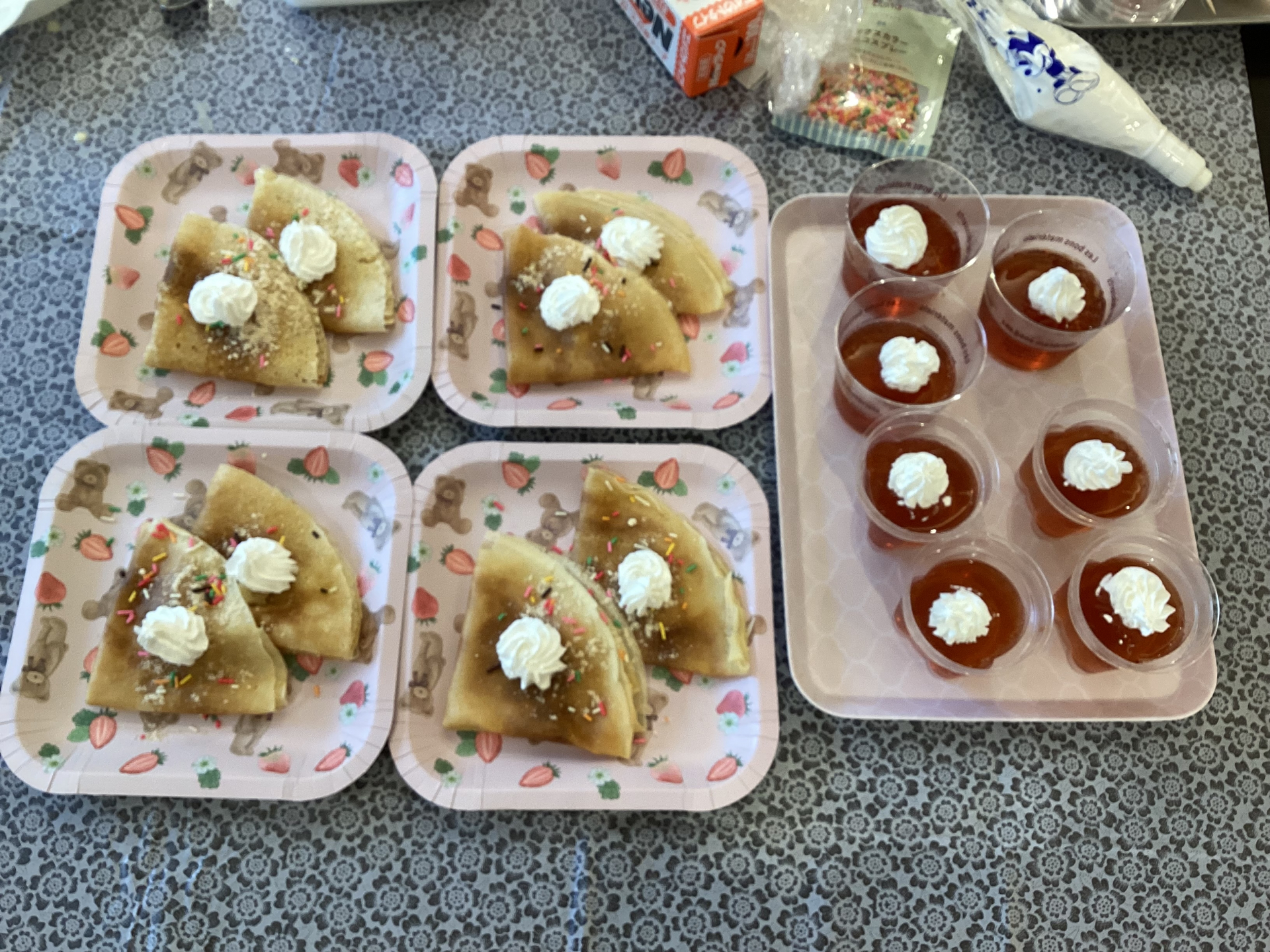 おやつのラインナップはクレープと紅茶のゼリーです♪