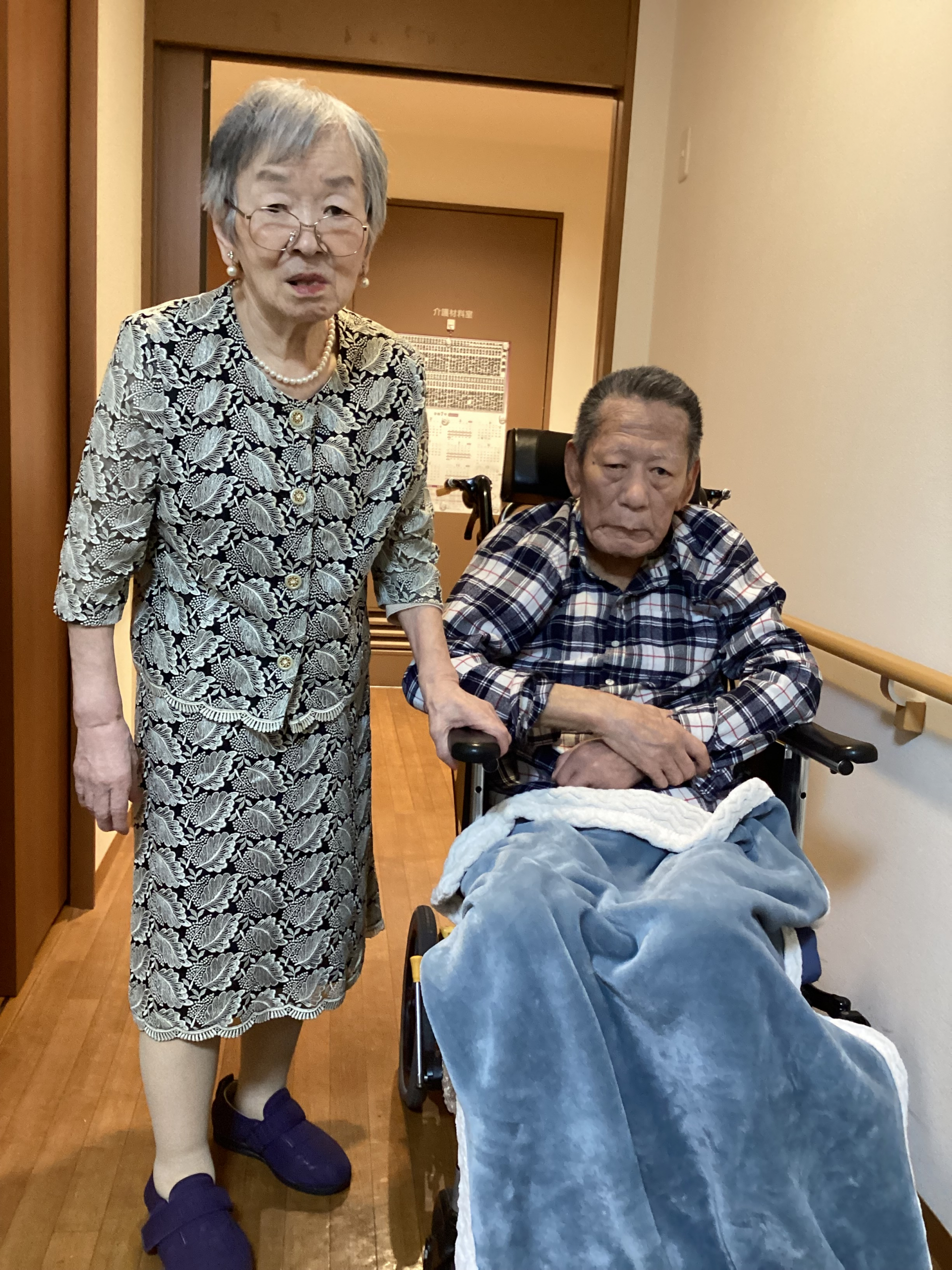 外出前に、旦那さんに見せに行き、記念に一緒に写真を撮りました。