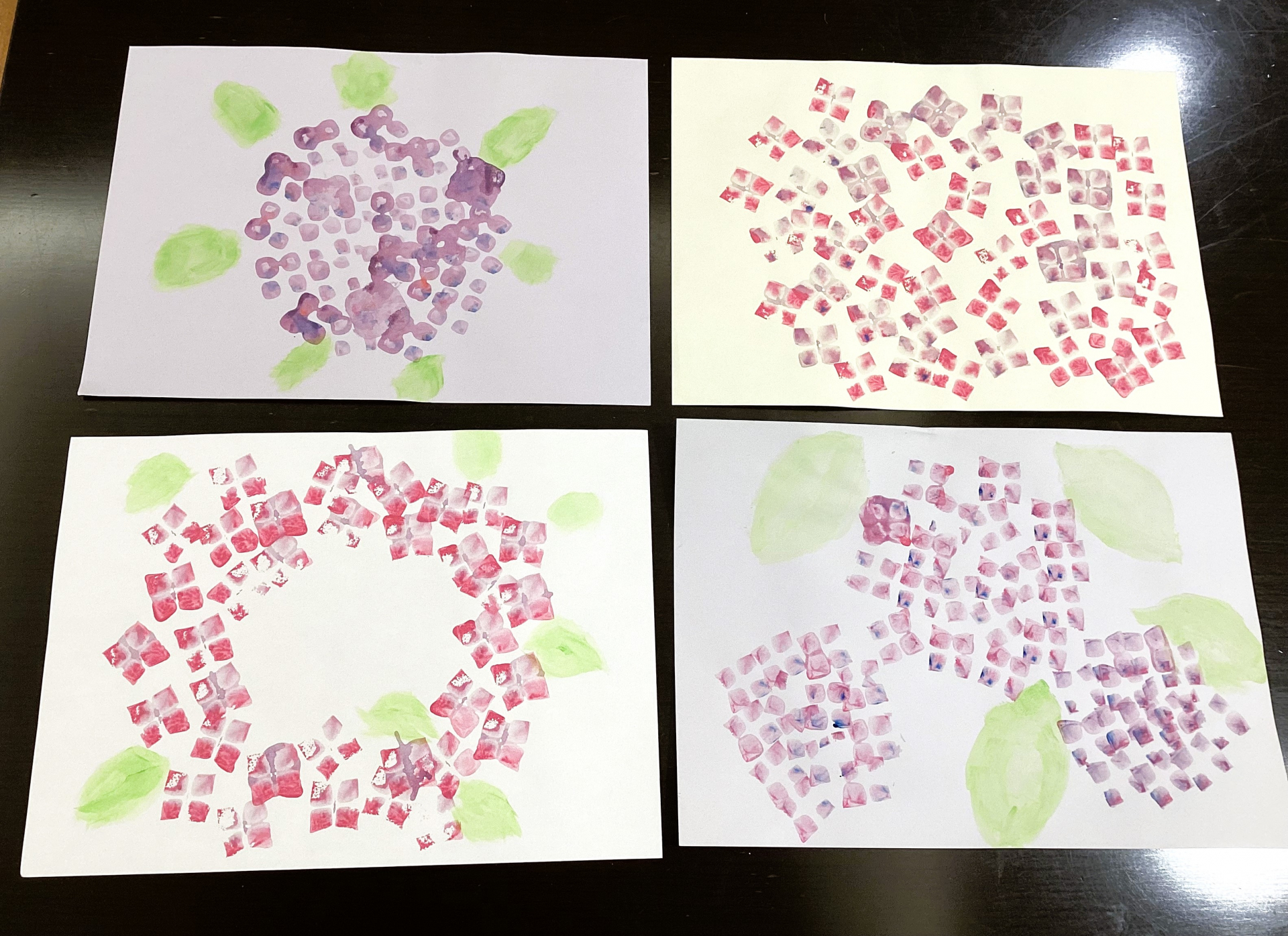 こんにちは!今日はアジサイの絵の続きを作っていました🌸