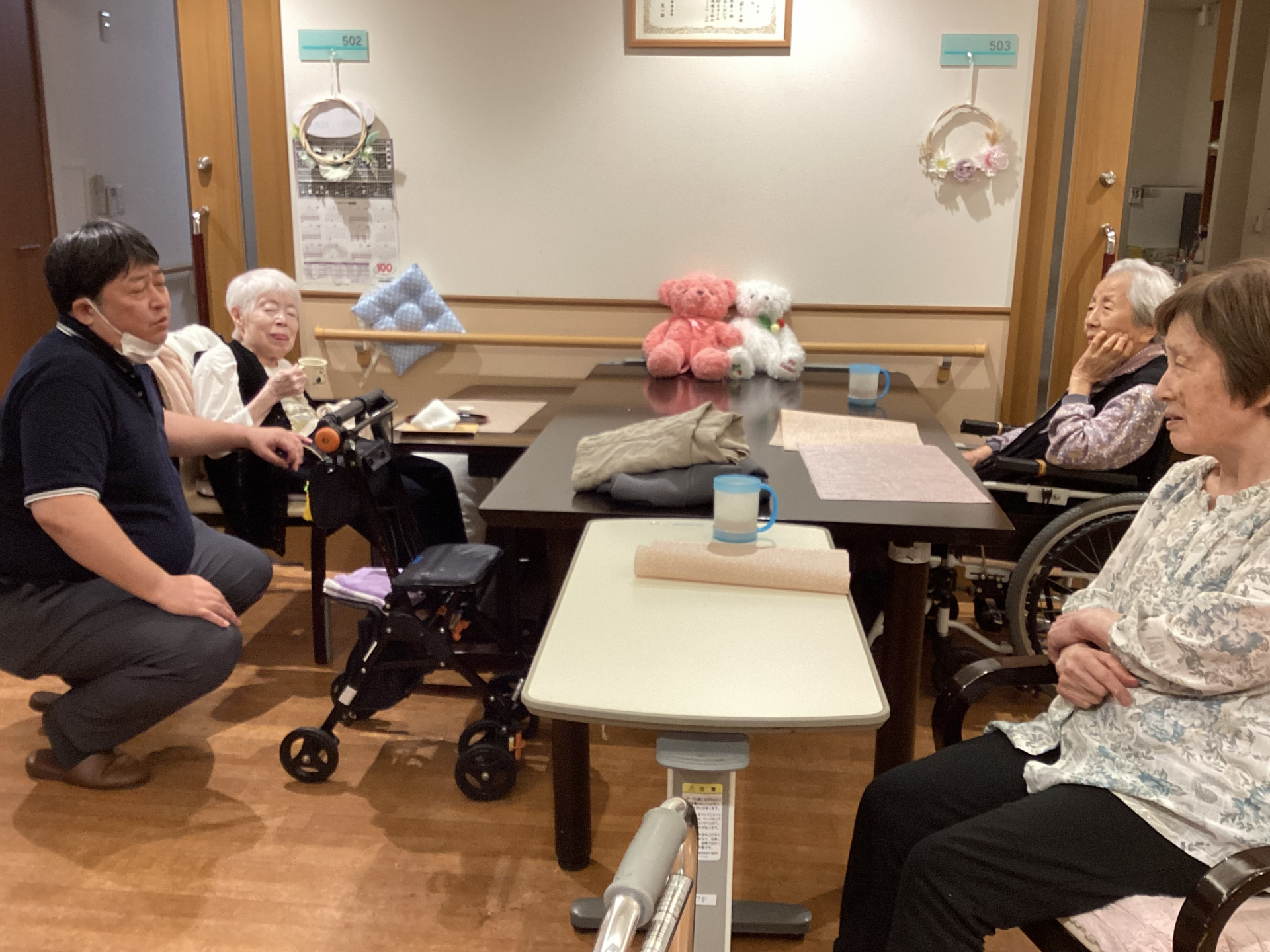 「皆さん元気ですか?」「ええ、おかげさまで」「元気です」