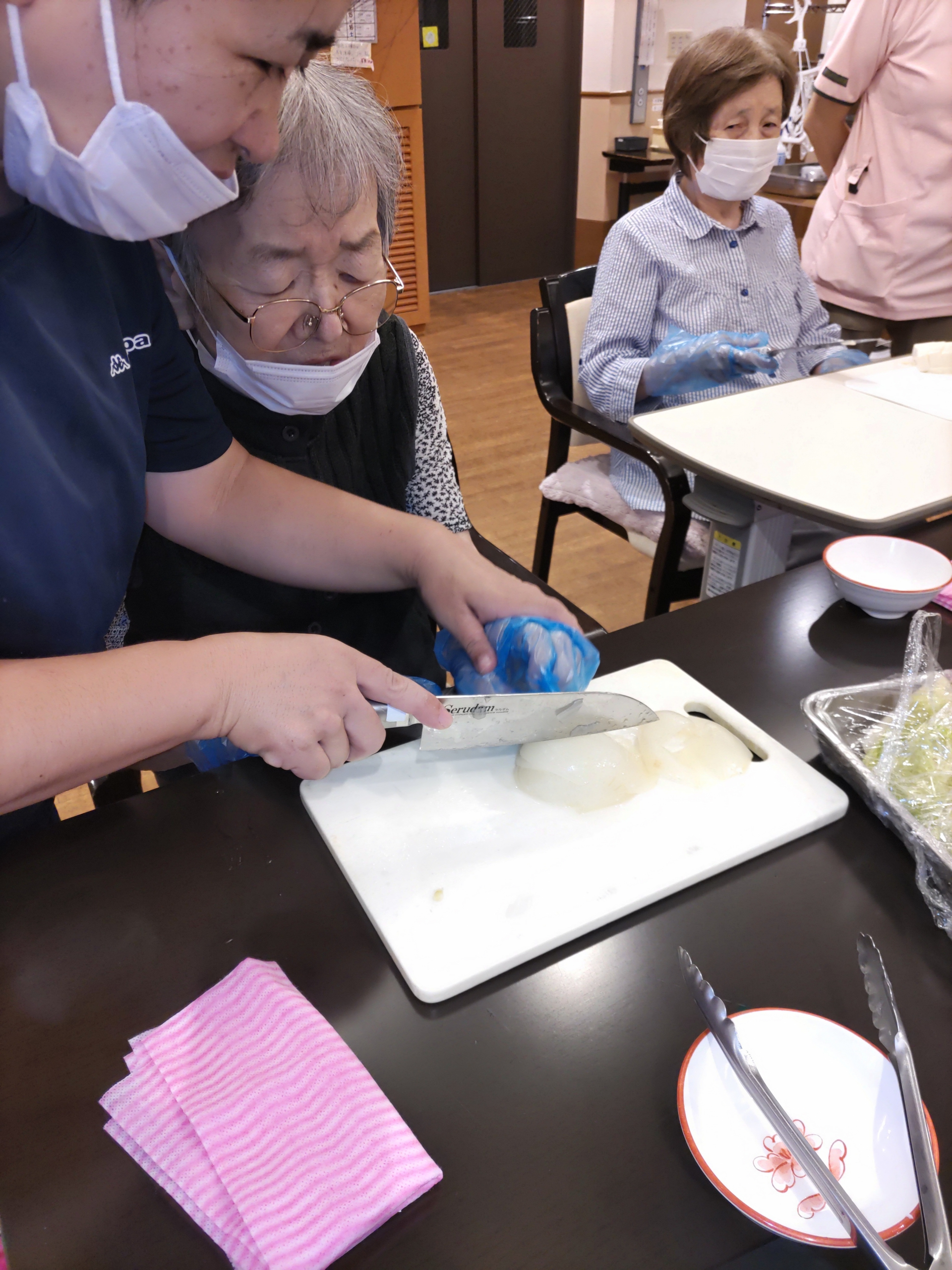 皆さん、昔を思い出して上手にカットできていました。昔取った杵柄ですね! 支援課 管理栄養士 K.O