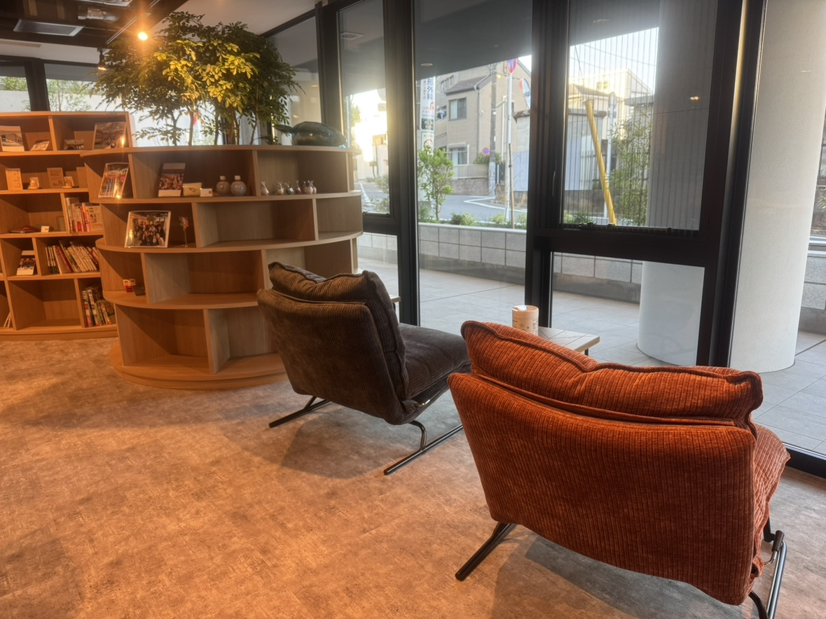 図書コーナーや、座り心地の良いチェアもあり、ゆったりした時間をおすごしいただけることと思います。