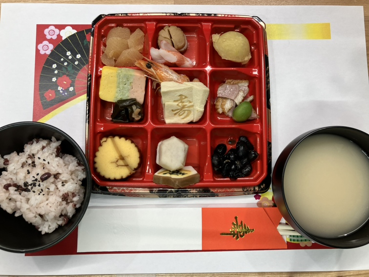 元旦には、管理栄養士が中心になって、彩り豊かなおせち料理をご用意しました。
