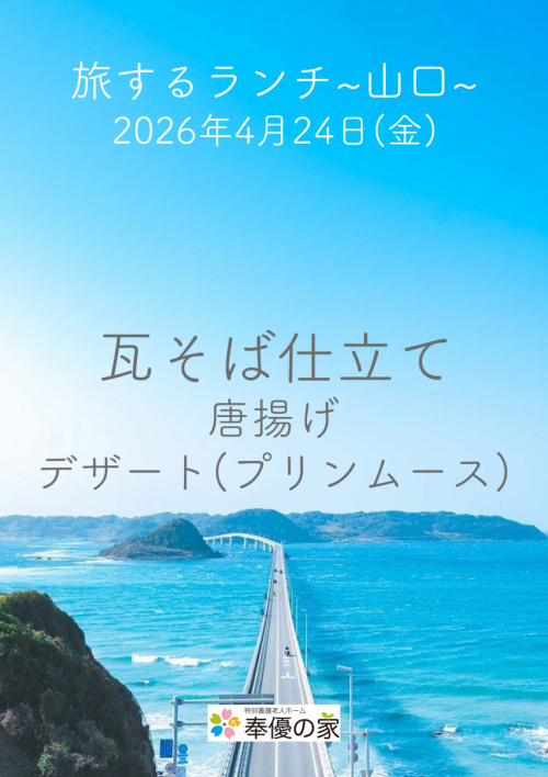 2026.04.21 NEW クラブ優~おもてなしイベント開催!~ 活動報告 #奉優の家 #特別養護老人ホーム #足立区 #イベント #おもてなし 2026.04.20 余暇支援♦5北~塗り絵の時間~ 活動報告 2026.04.19 余暇支援♦5北~日陰がやさしい午後のひととき~ 活動報告 2026.04.18 ♦余暇支援♦3北 おしぼりを畳む♡ 活動報告 2026.04.18 ♦5月の献立を更新しました♦ お食事 2026.04.17 ♦茶話会を開催しました♦ 活動報告 2026.04.15 余暇支援♦4北~ゆっくり過ごす午後時間~ 特別養護老人ホーム 2026.04.15 余暇支援♦4北~雨の日でも特別なお花見へ~ 特別養護老人ホーム 2026.04.14 ♦余暇支援♦3北~お花~ 活動報告 2026.04.12 ♦余暇支援♦3北 気持ちいいね~ 活動報告 2026.04.12 ♦余暇支援♦3北 本日のおやつは。。 活動報告 2026.04.12 ♦余暇支援♦3北 気分転換に行く~ 活動報告 2026.04.12 ♦余暇支援♦3北 好きなもの食べたい! 活動報告 2026.04.11 ♦余暇支援♦3北~お花~ 活動報告 2026.04.10 ♦余暇支援♦3北 焼き鳥レク♡ 活動報告 1 2 3 … 83