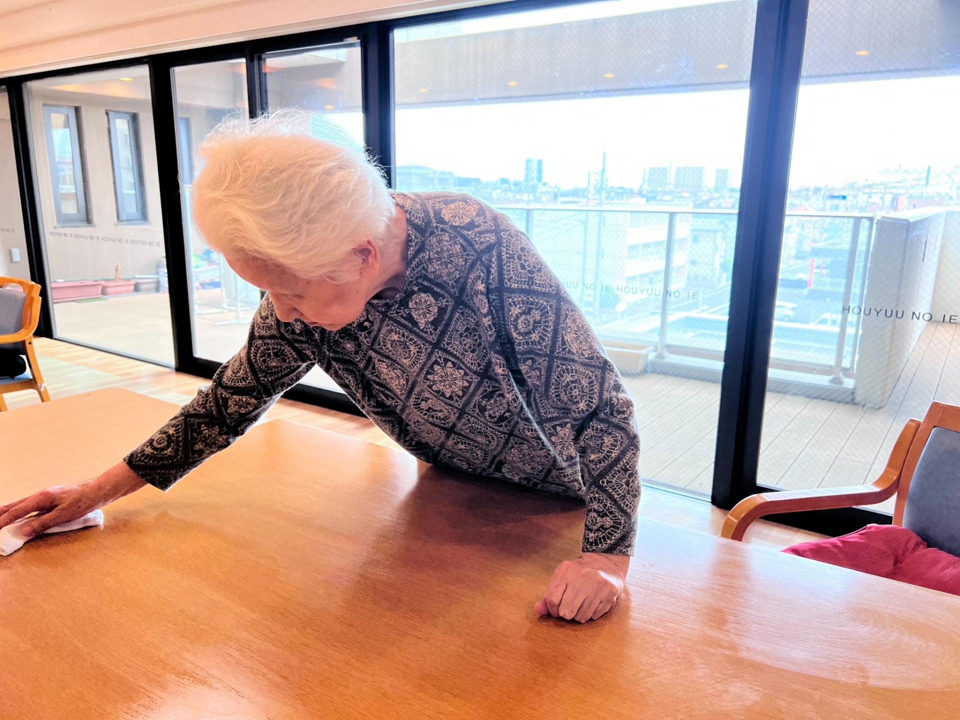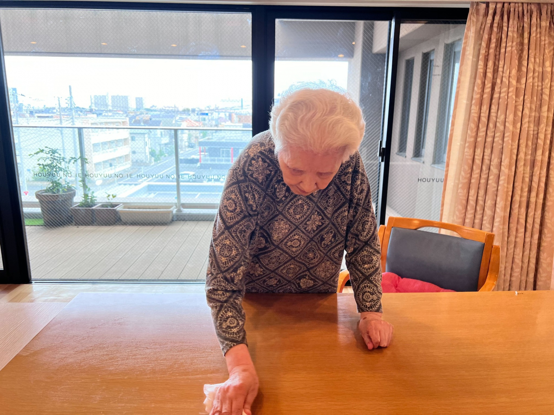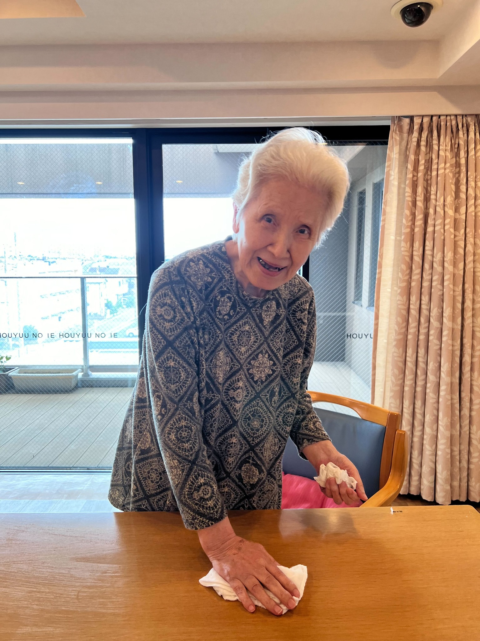 今日、食事を終えた後、利用者様が自らテーブルを拭いてくださいました