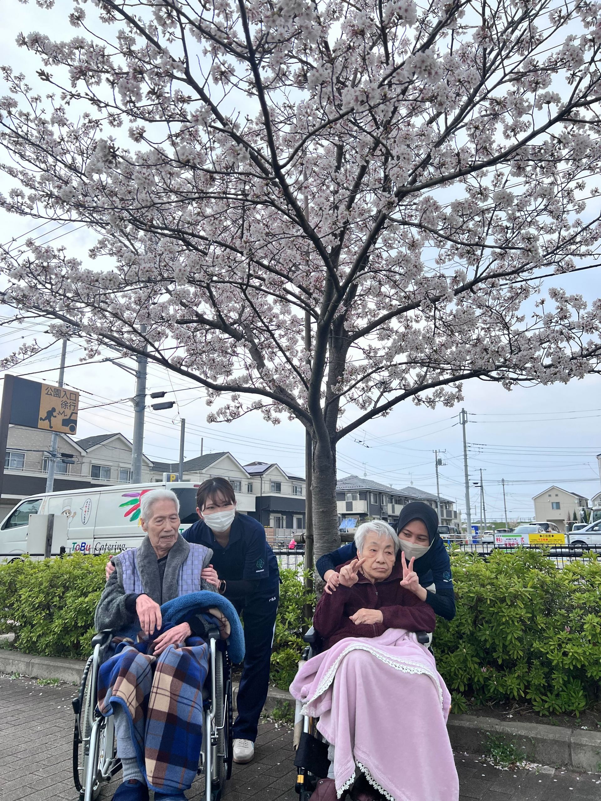 満開の桜を見て「きれいだね」と笑顔もたくさん見られました。