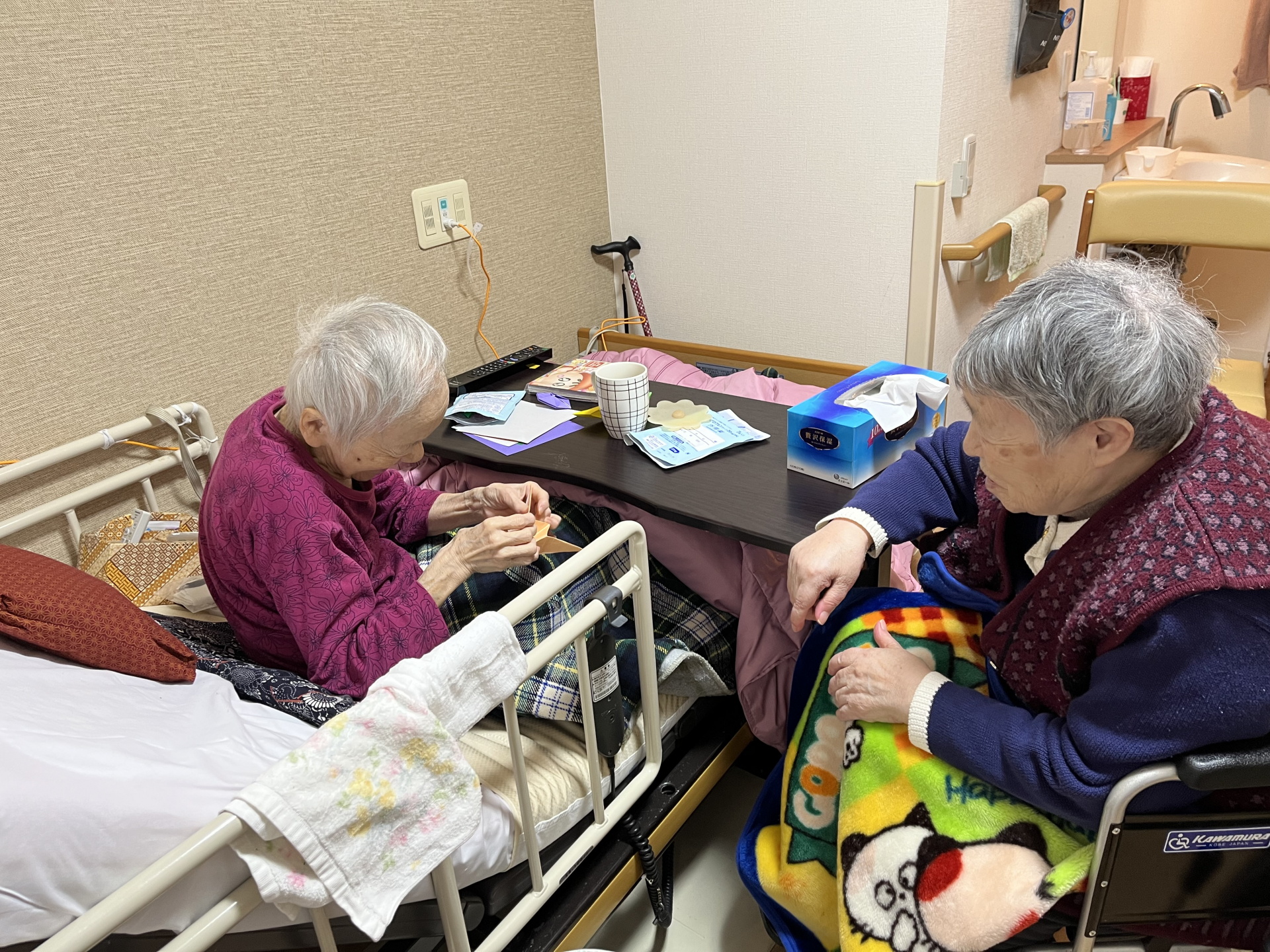 お二人で折り鶴をしながら、さまざまな話題で盛り上がっていました(^_-)-☆