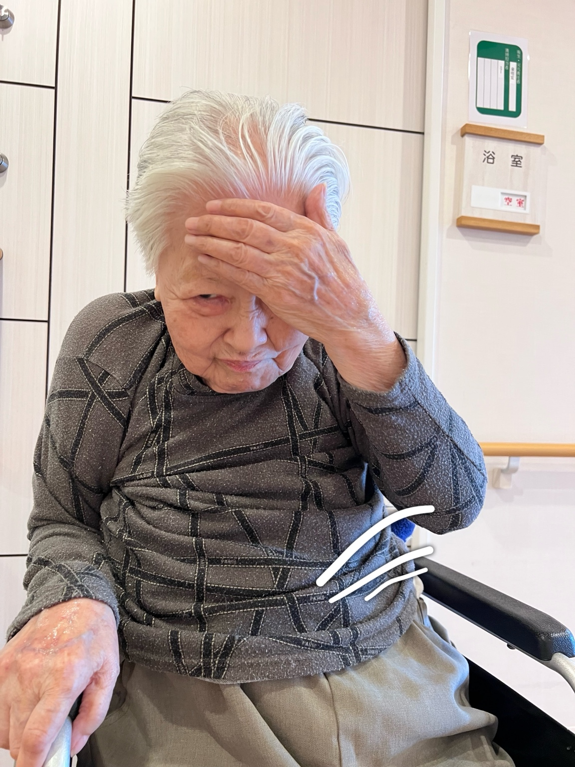 手でおでこをトントン。「今日も元気だよ~」と笑ってくださった姿に、こちらまでほっこり。