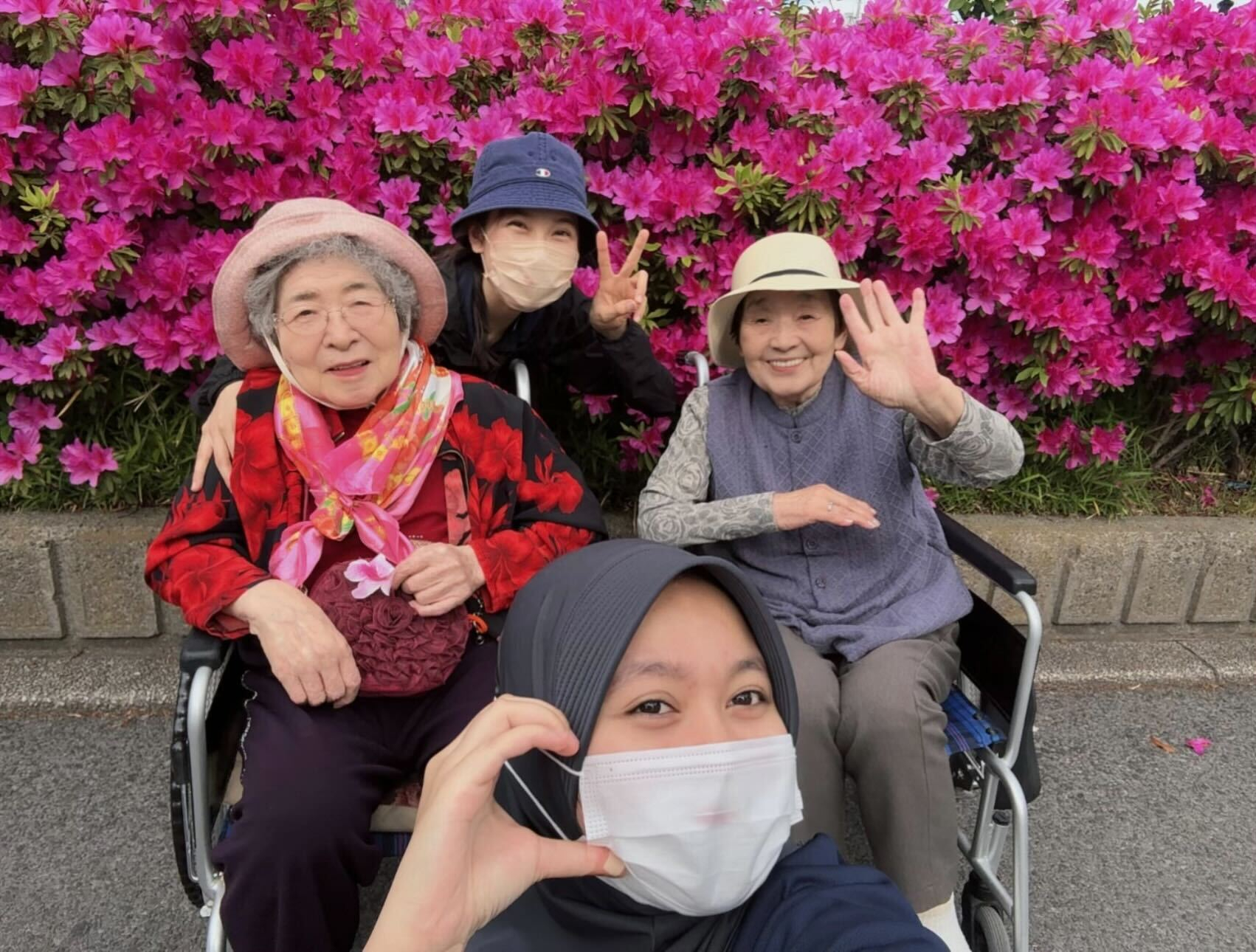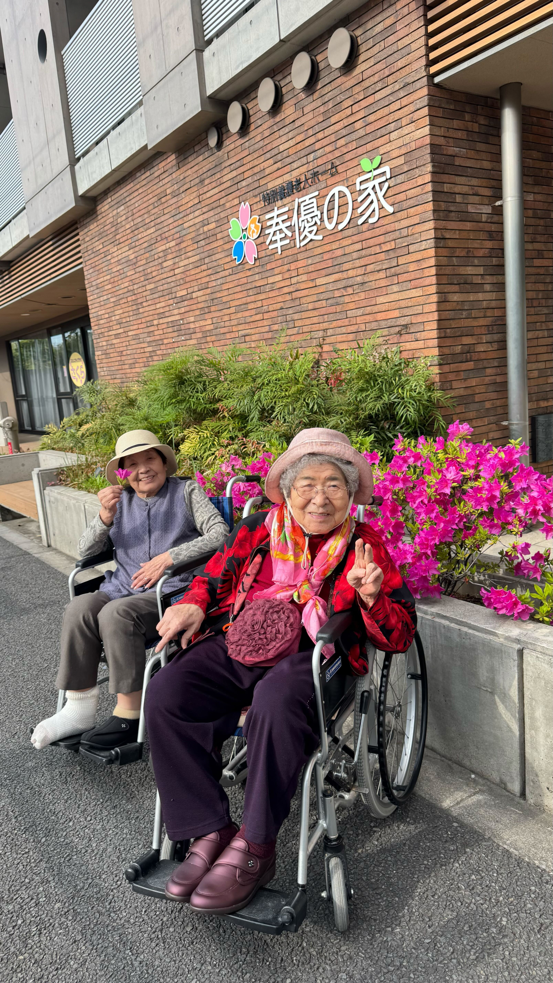 お天気にも恵まれ、外出日和の一日でした。道沿いに咲き誇る色とりどりのツツジを眺めながら、皆様と一緒にお散歩へ。