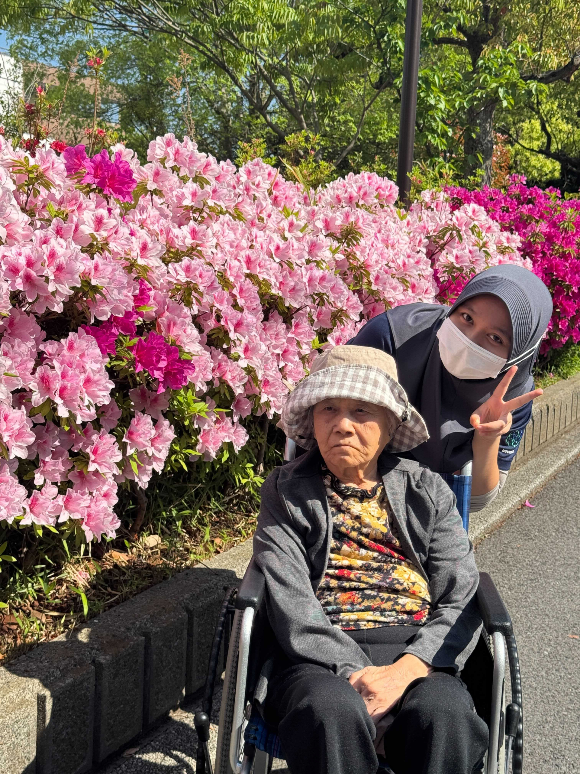 日差しも心地良く、花の香りに包まれながら、散歩を楽しまれています。