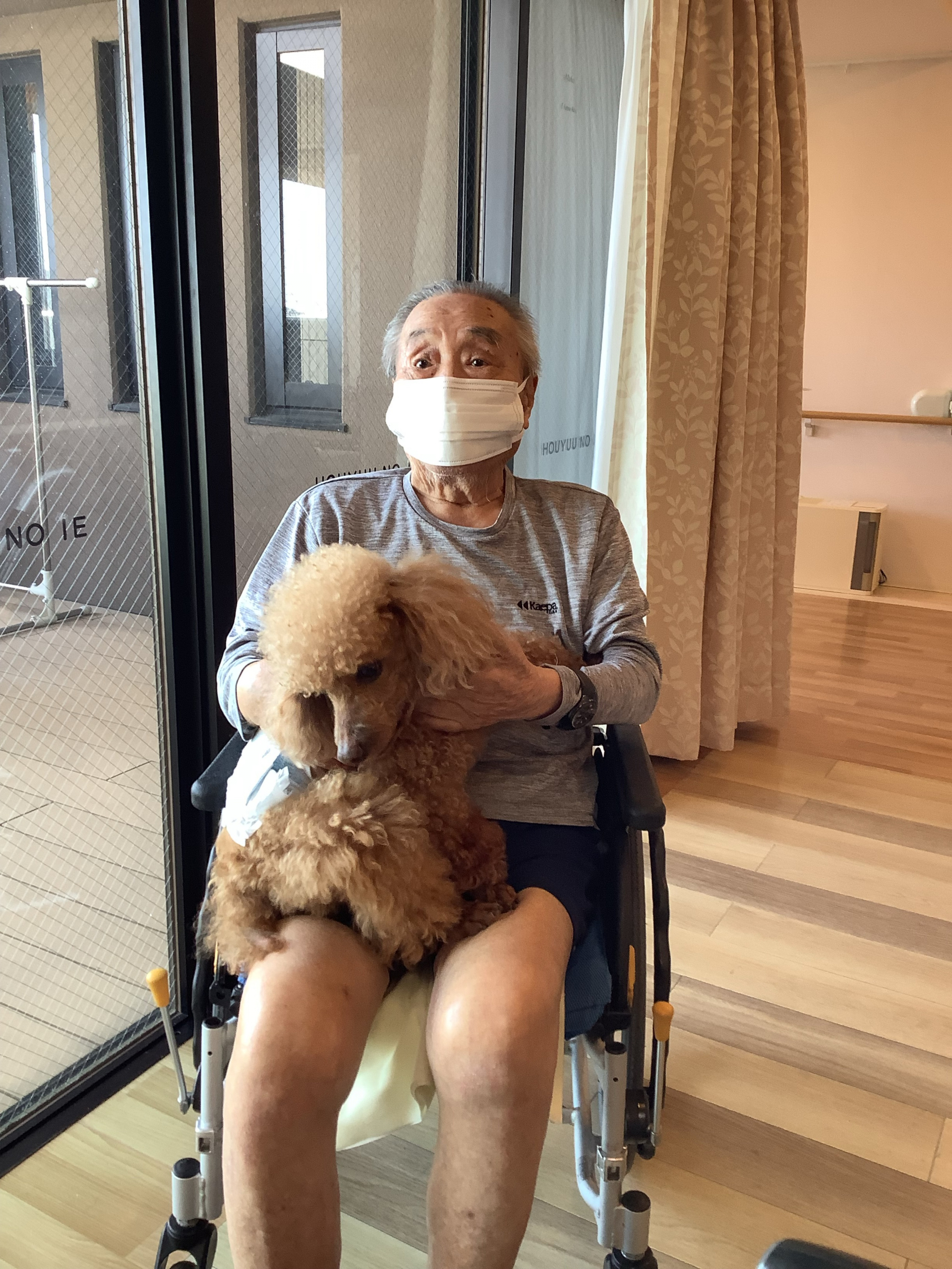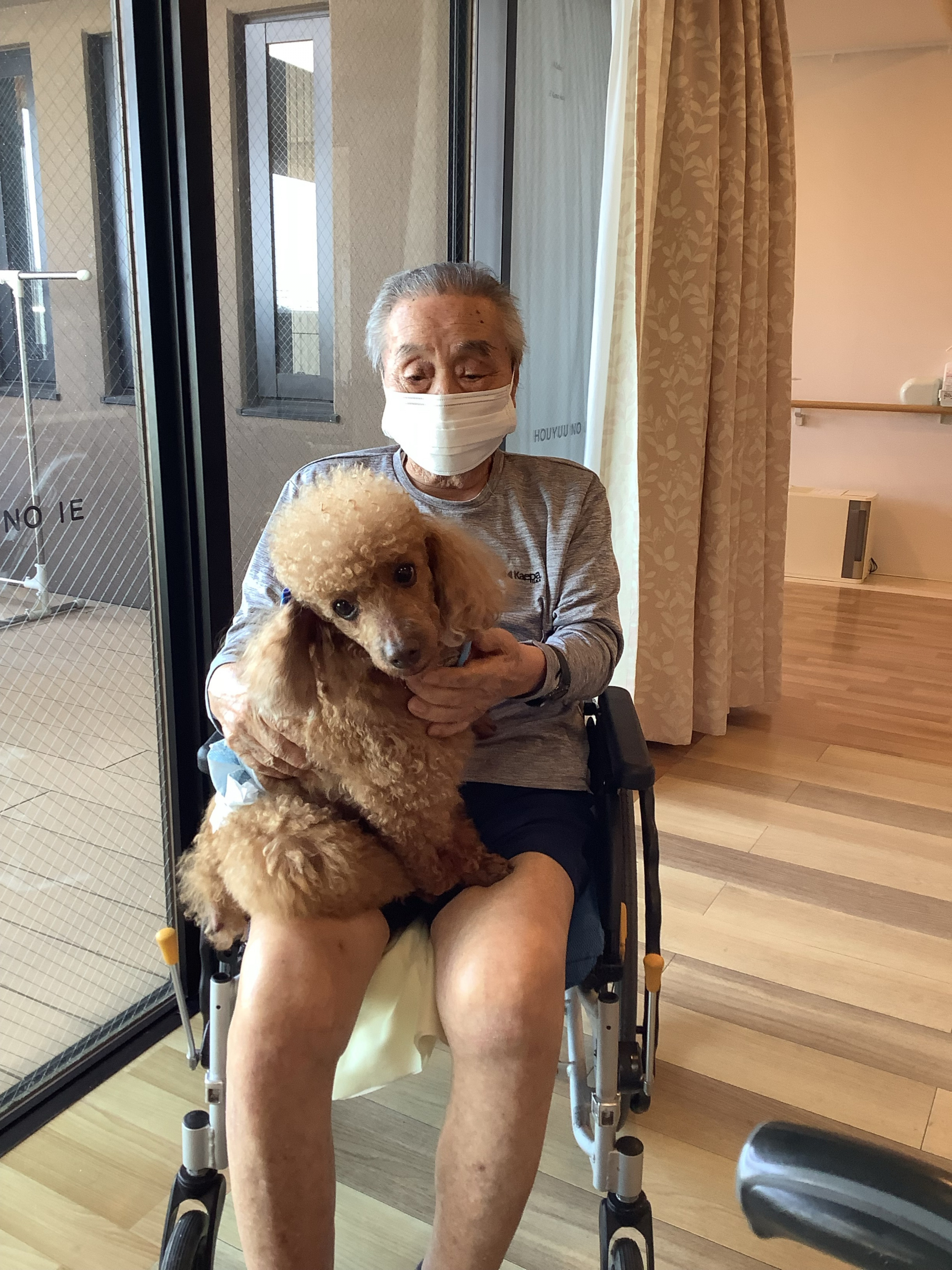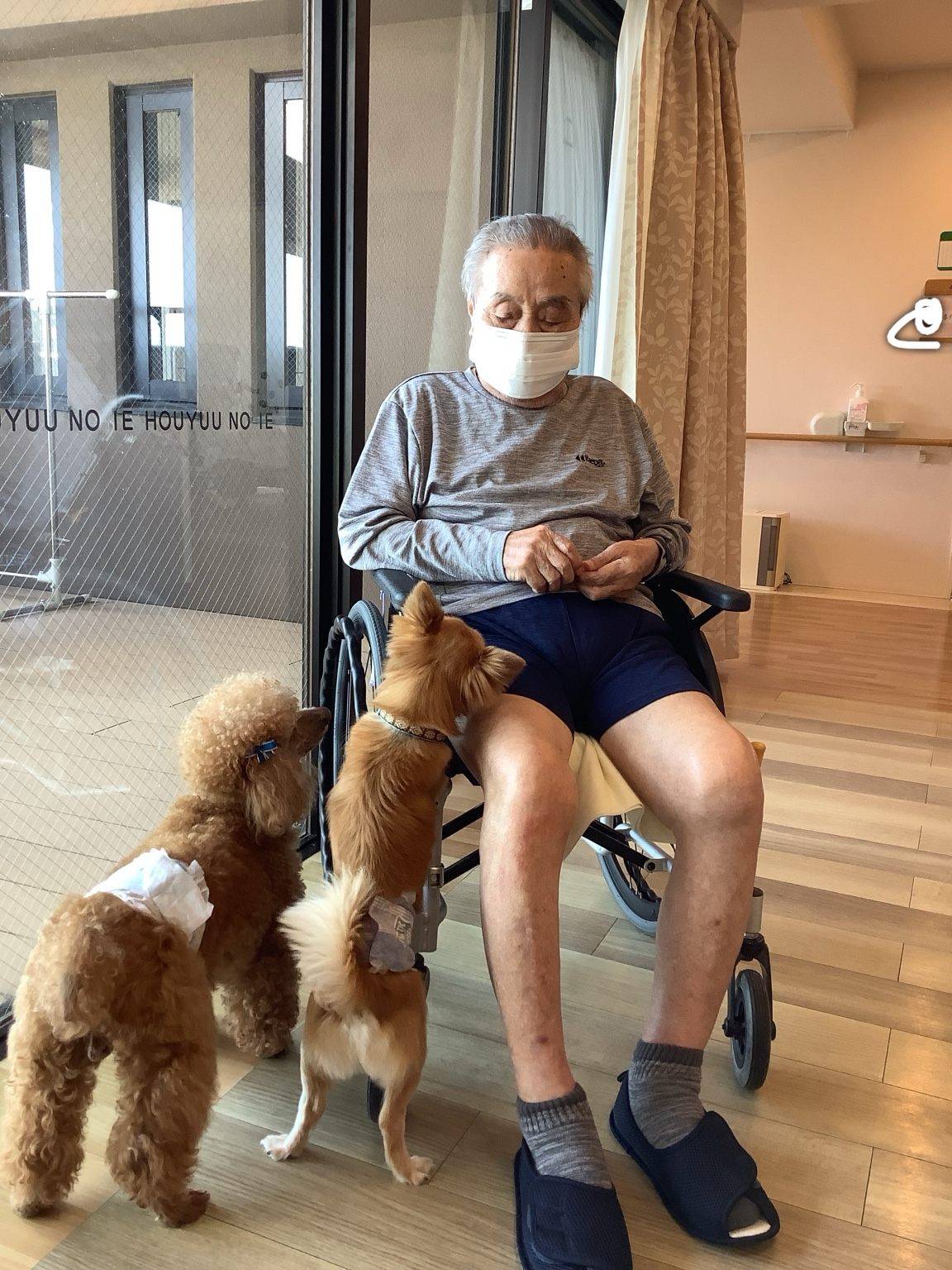 2匹のわんちゃんが膝に集まり、笑顔がこぼれました。