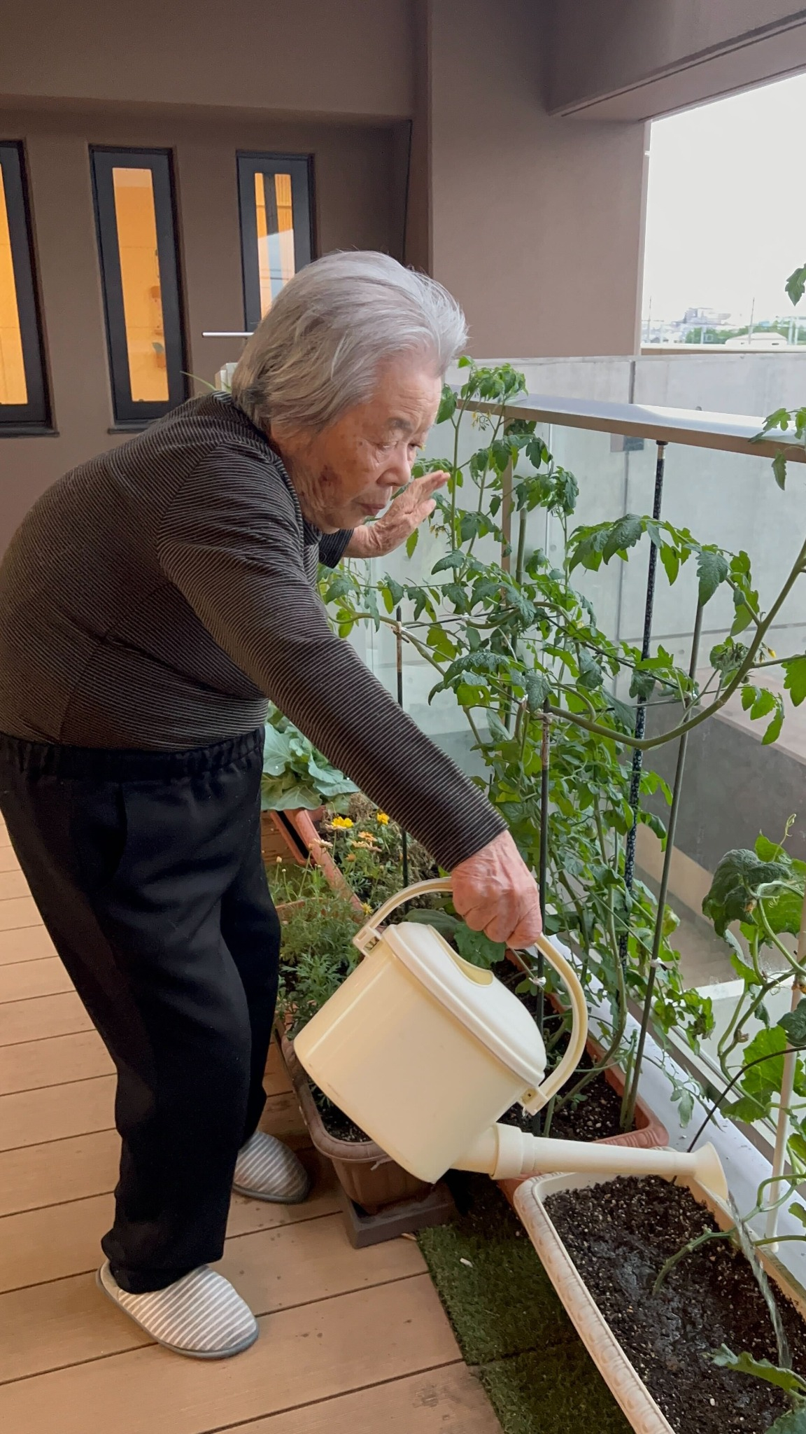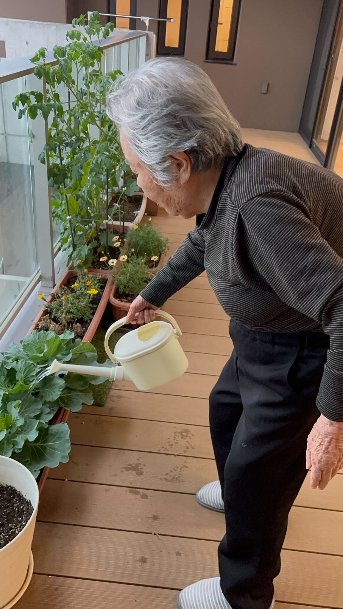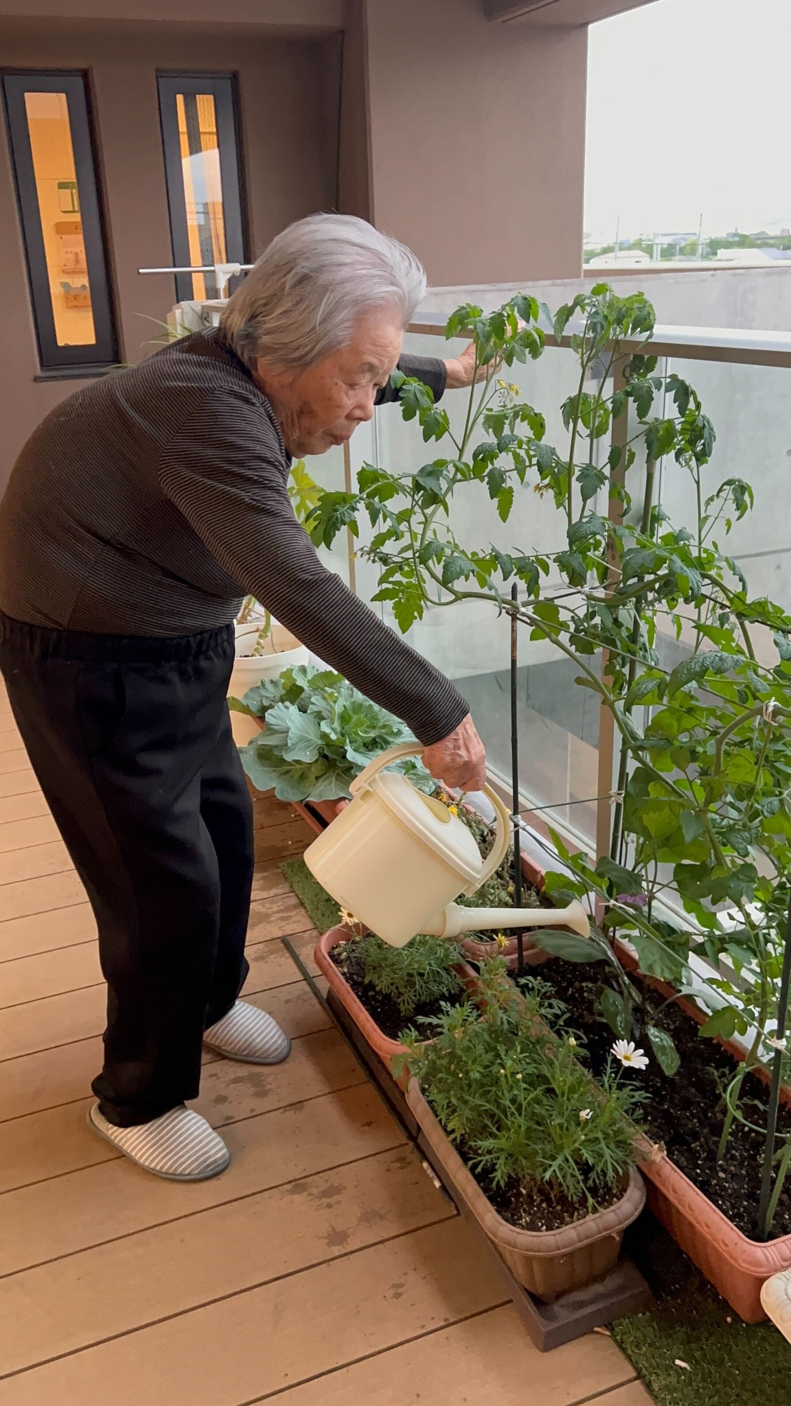 4南フロアでは、入居者様と一緒にベランダでお野菜を育てています。
