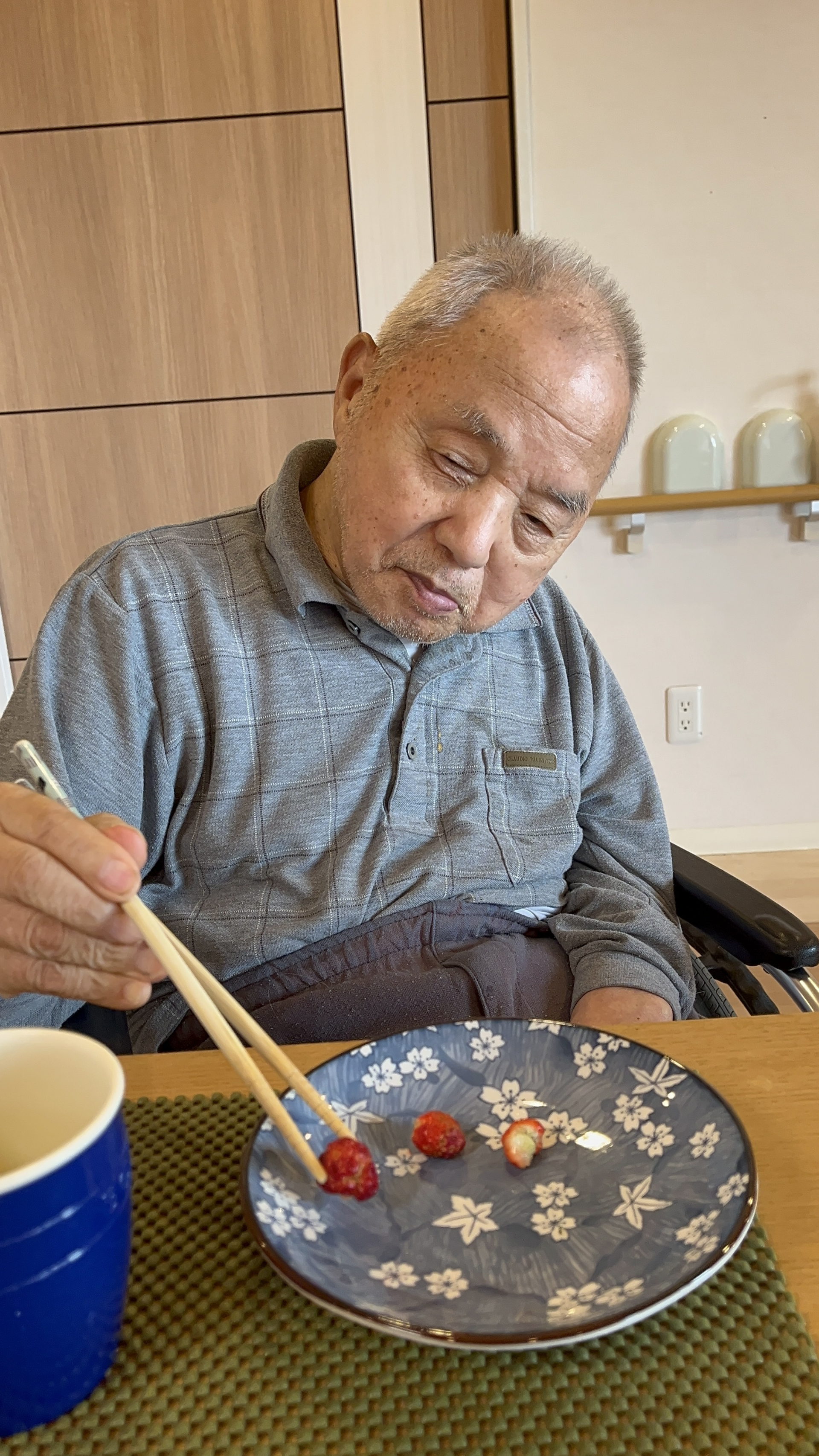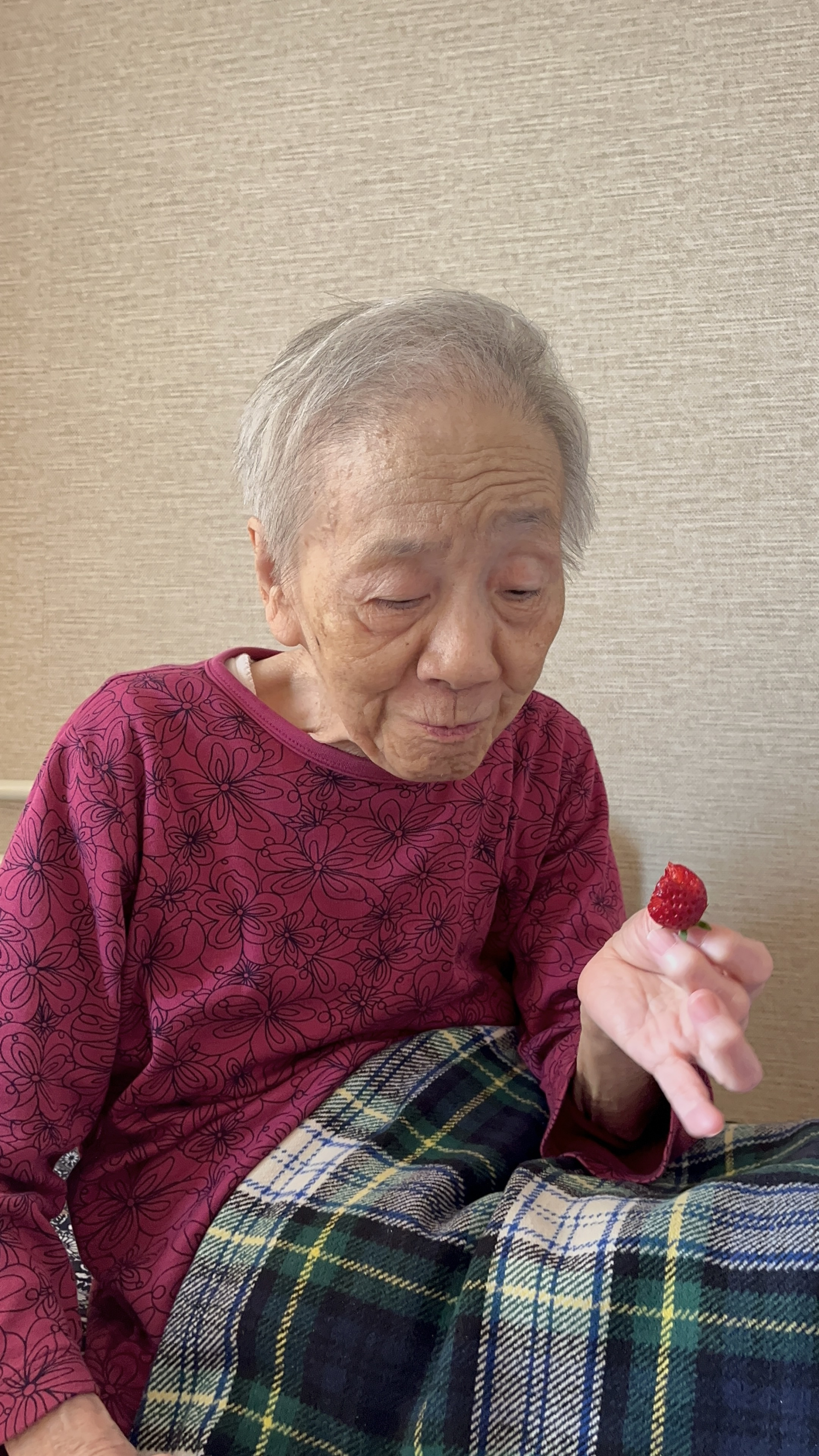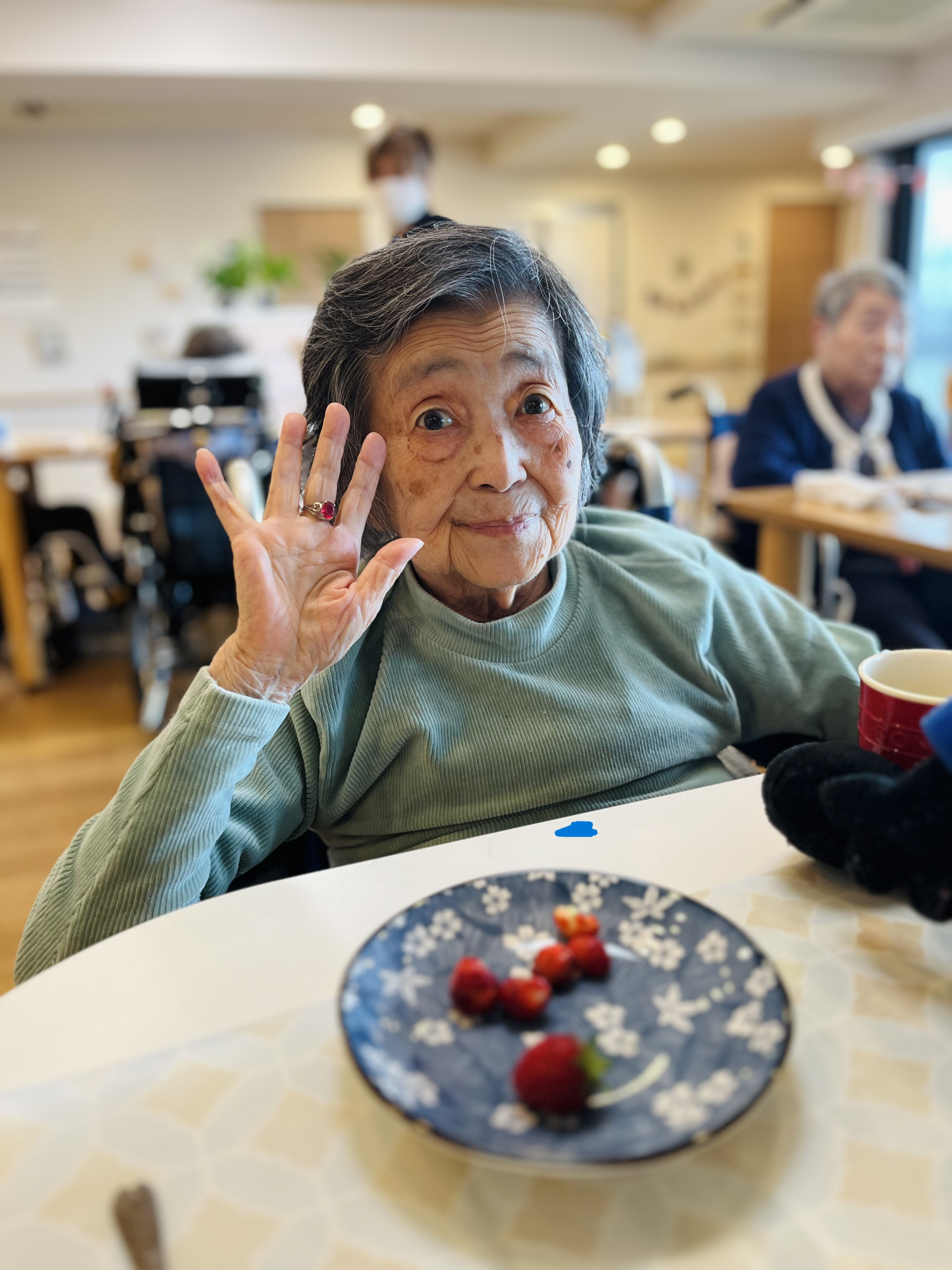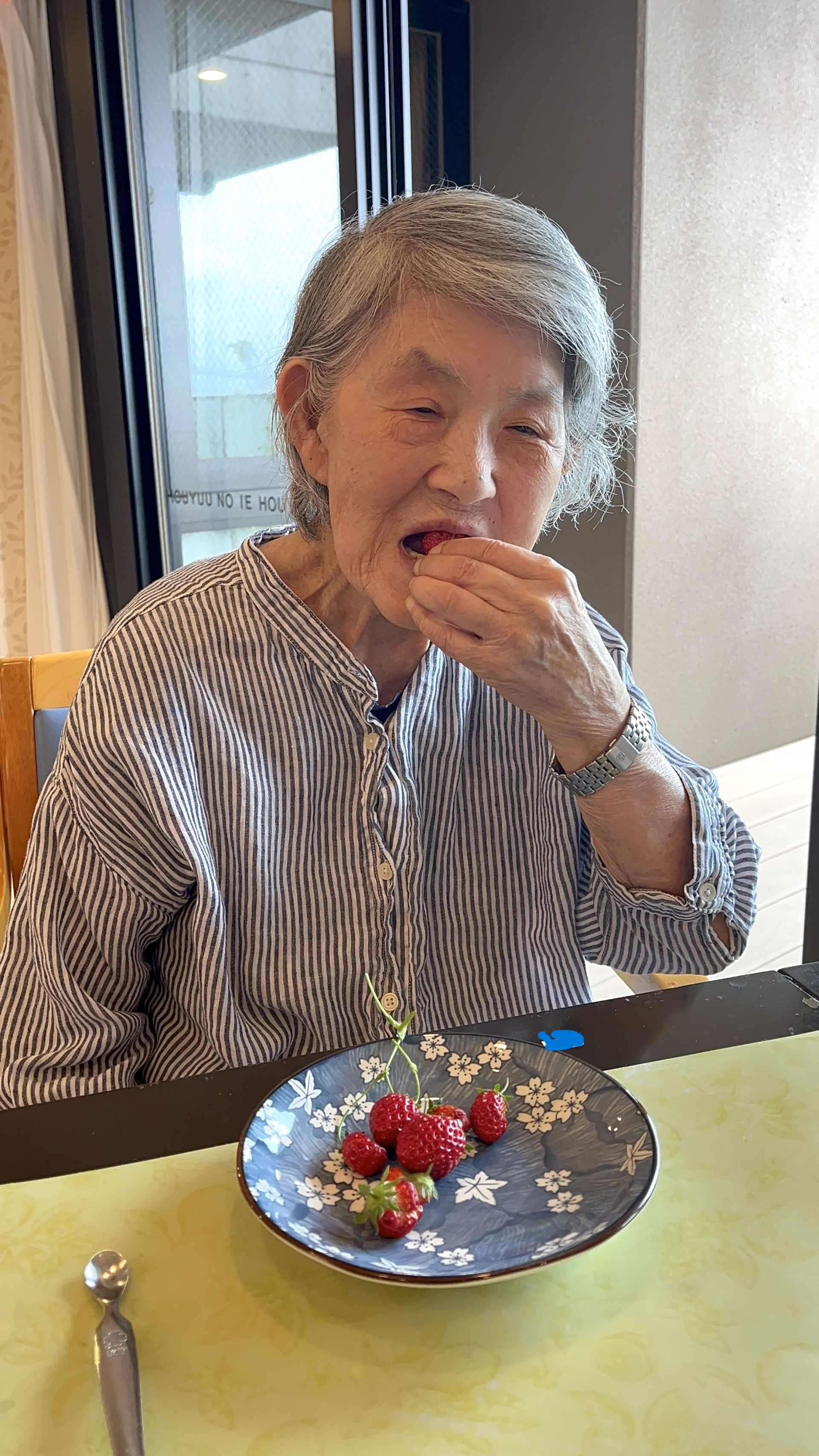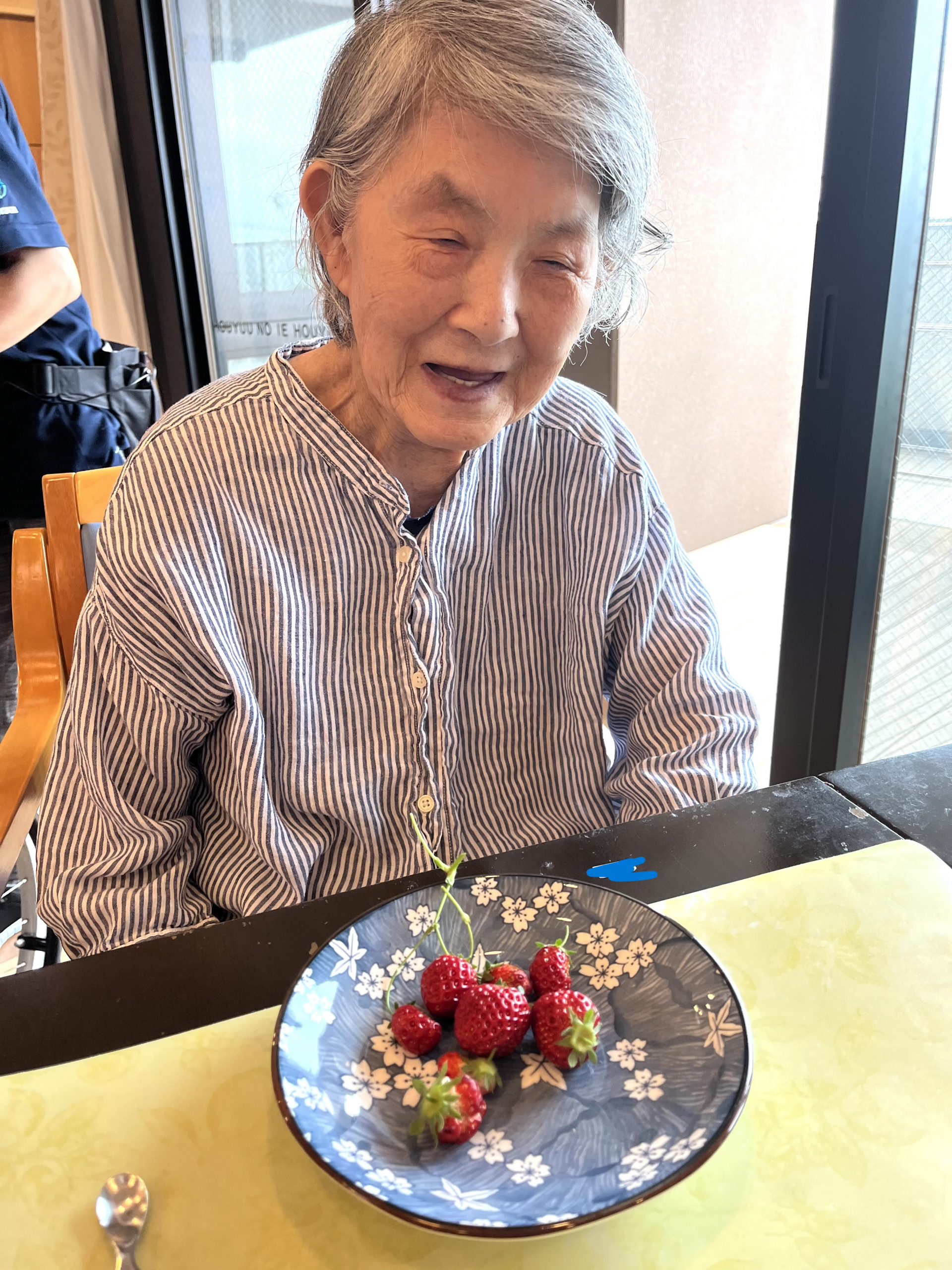 利用者様が4北のベランダから収穫したイチゴを召し上がりました。