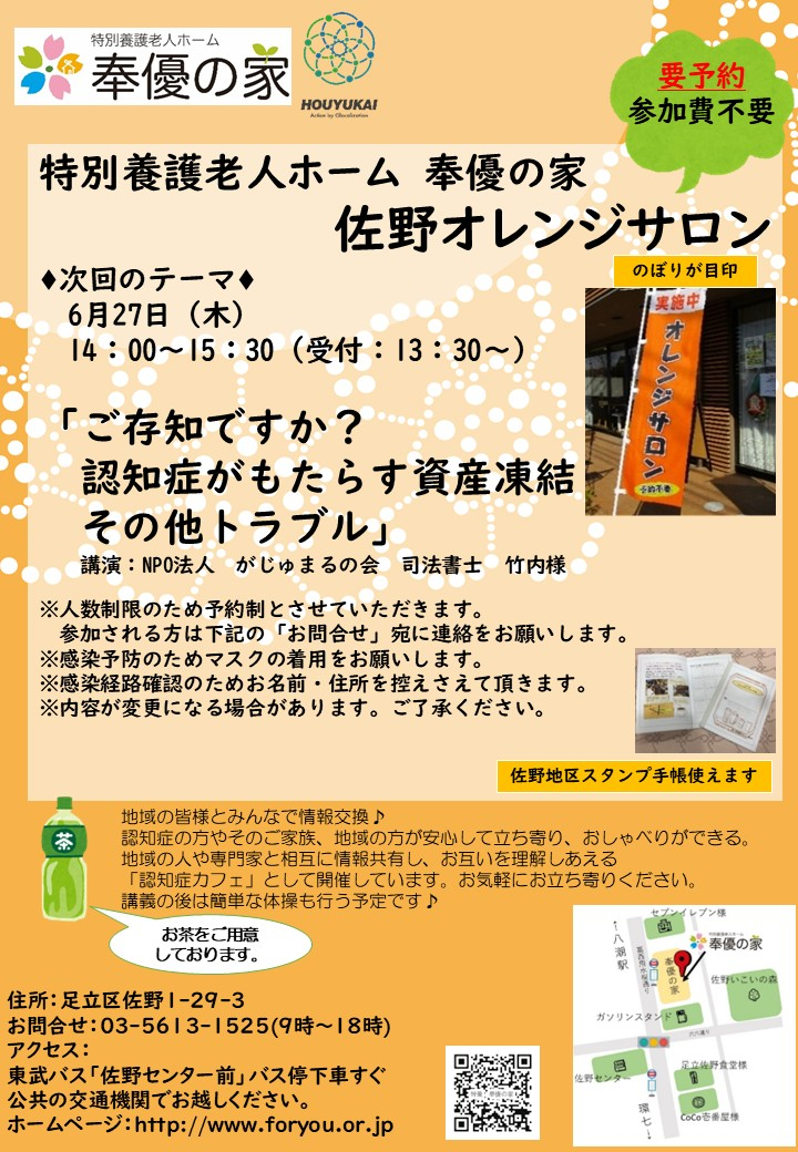 当施設では毎月第4木曜日に認知症カフェ「佐野オレンジサロン」を開催しています。
