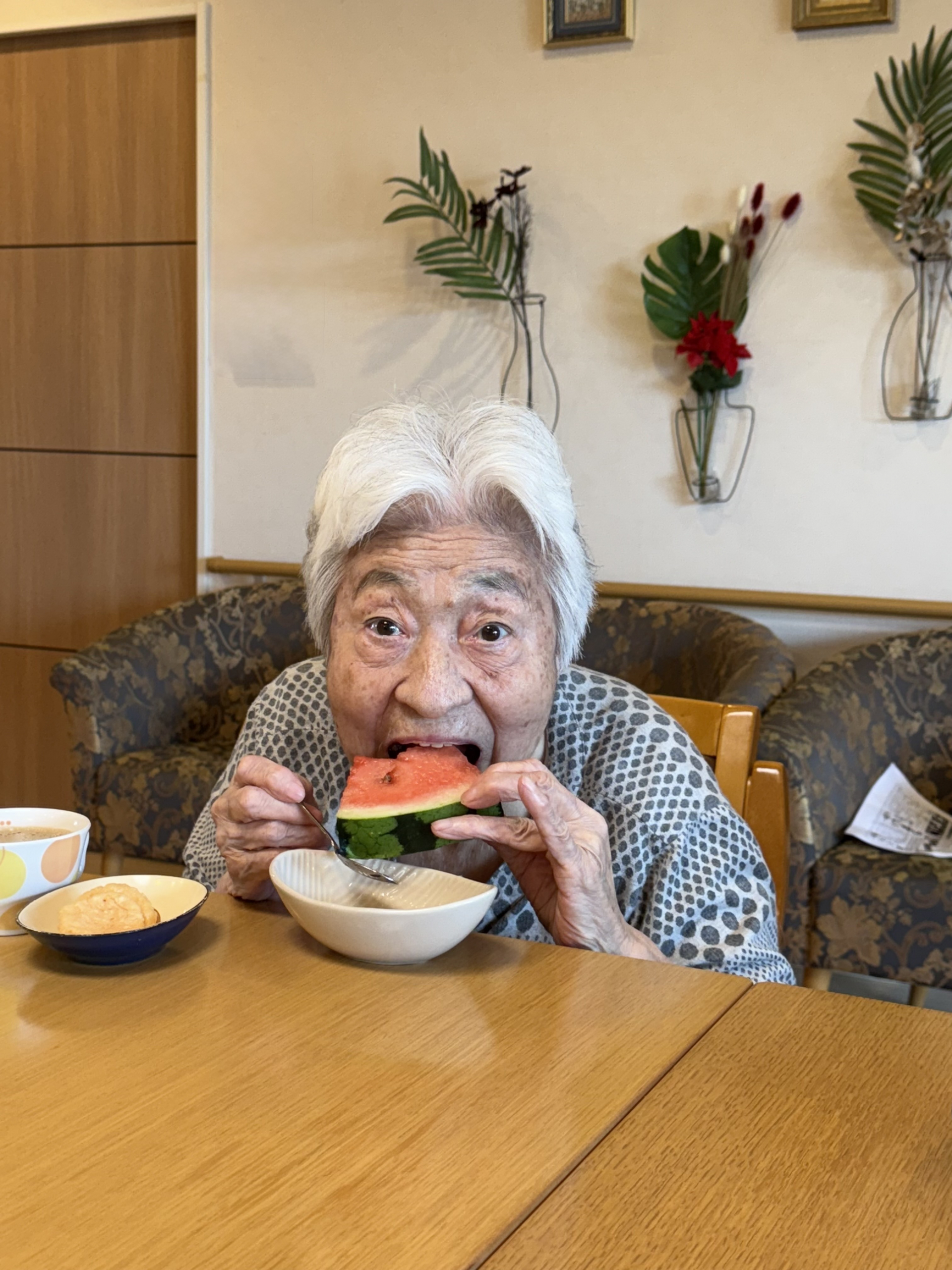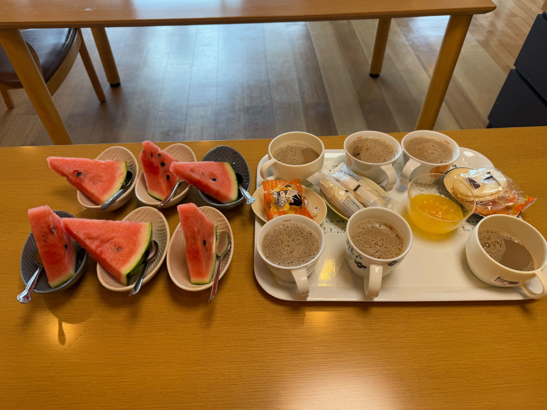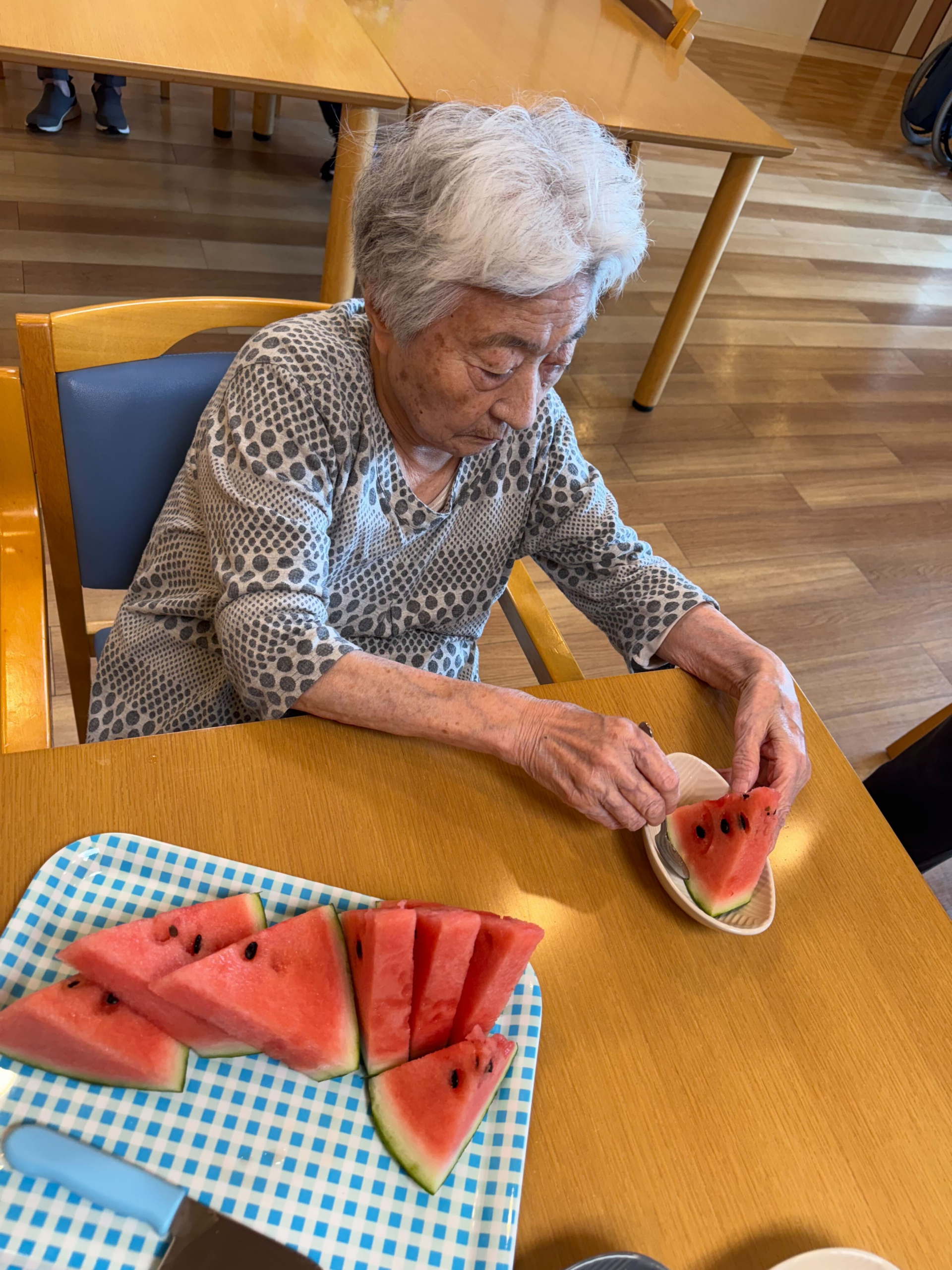 本日はおやつの時間、ユニットからスイカを買ってきました。