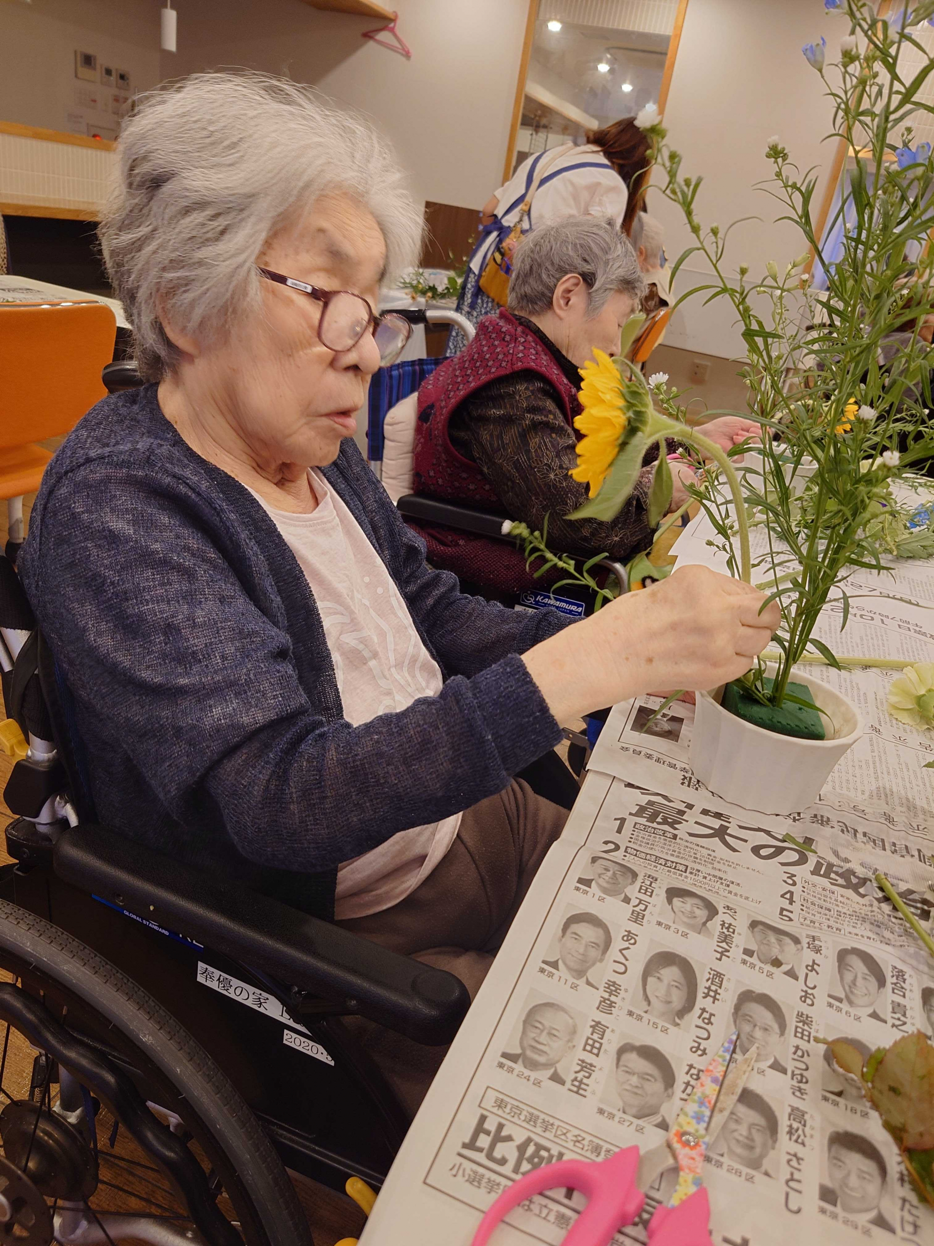 奉優の家では毎月1回ご希望の利用者様とフラワーアレンジメント教室を開催しております。