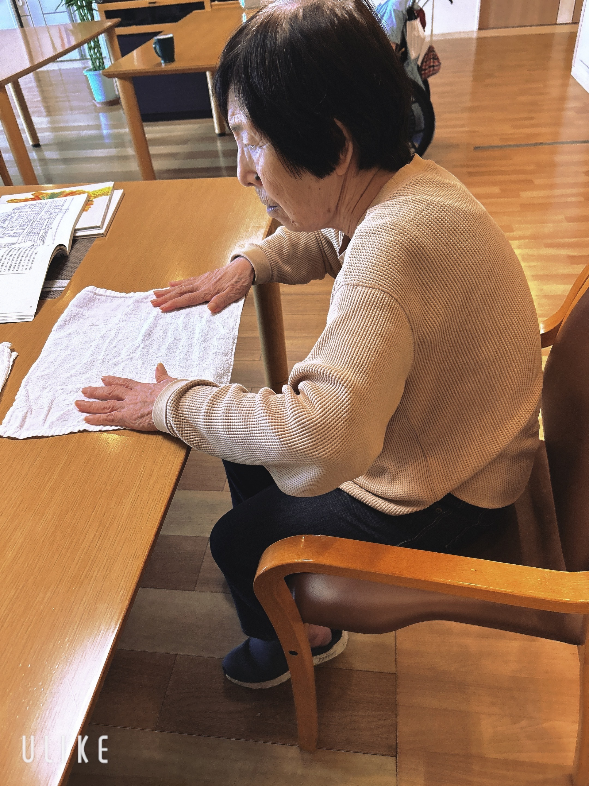 お食事の後は、おしぼりたたみを手伝ってくださってます♪