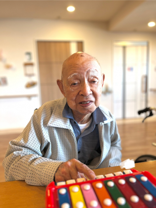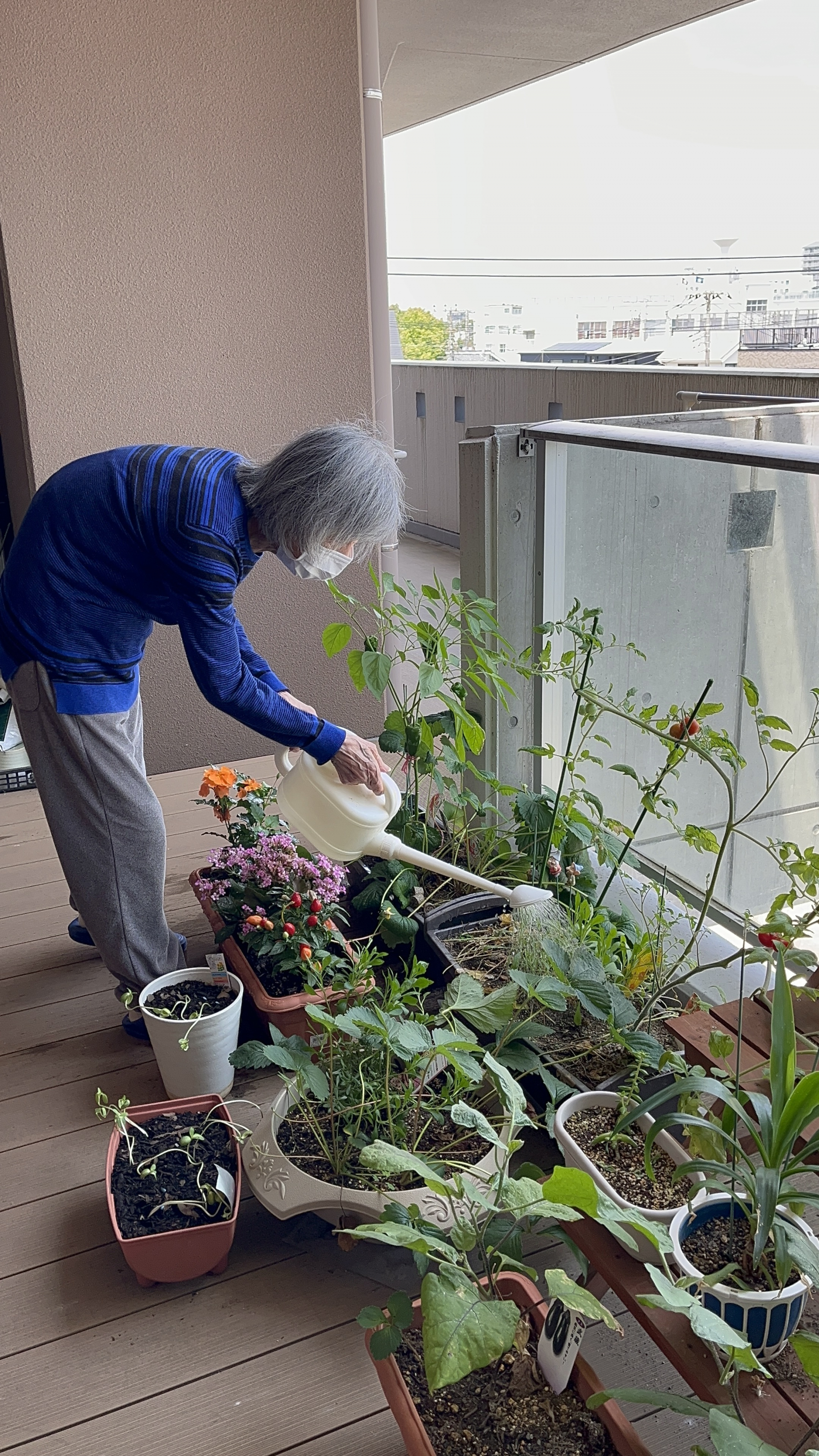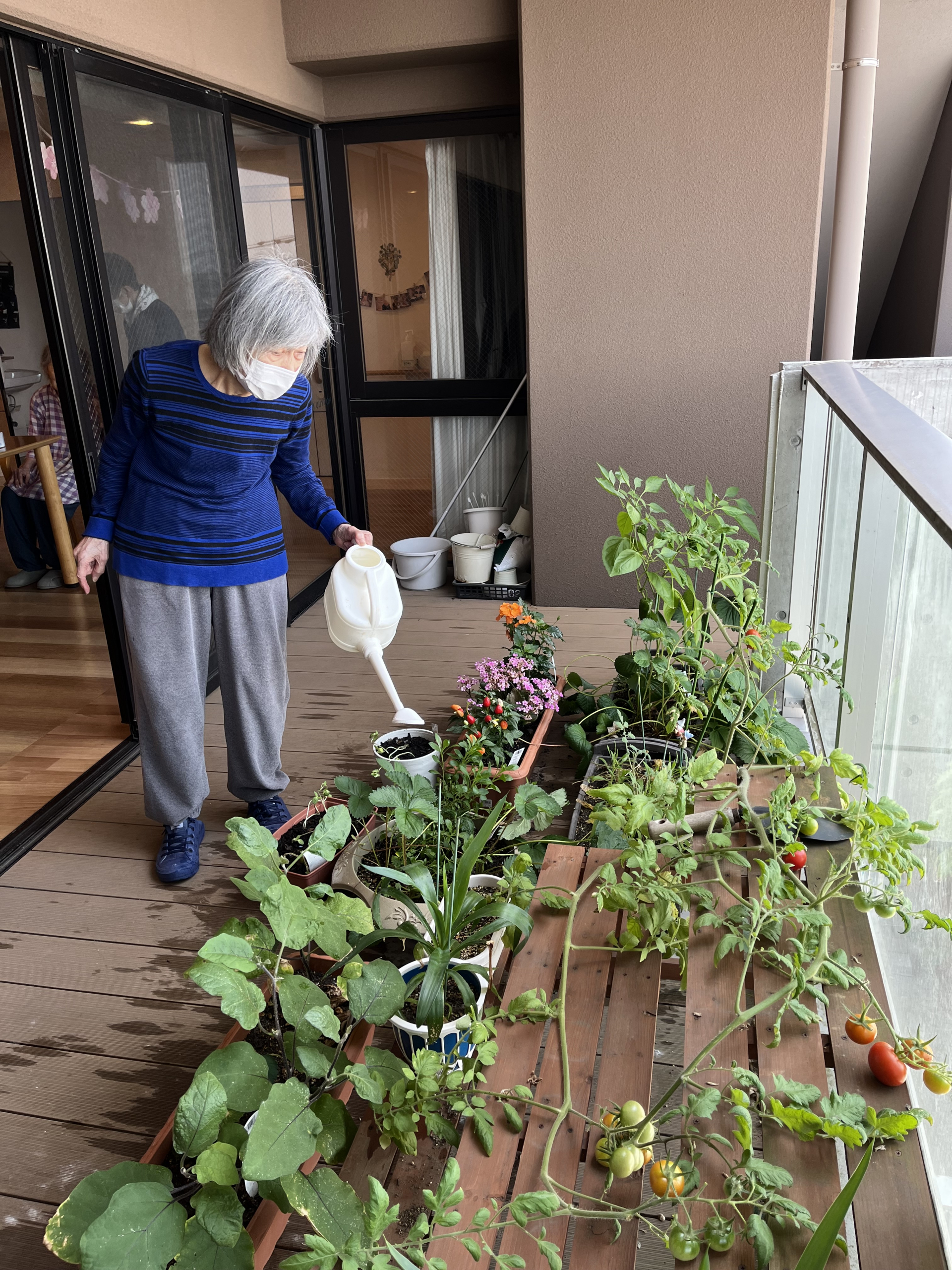 ベランダで日光浴後、本人が職員の方に来て「今日水があげたんでか。もしかしたら私がやりますよ。」と仰いました(^_-)-☆