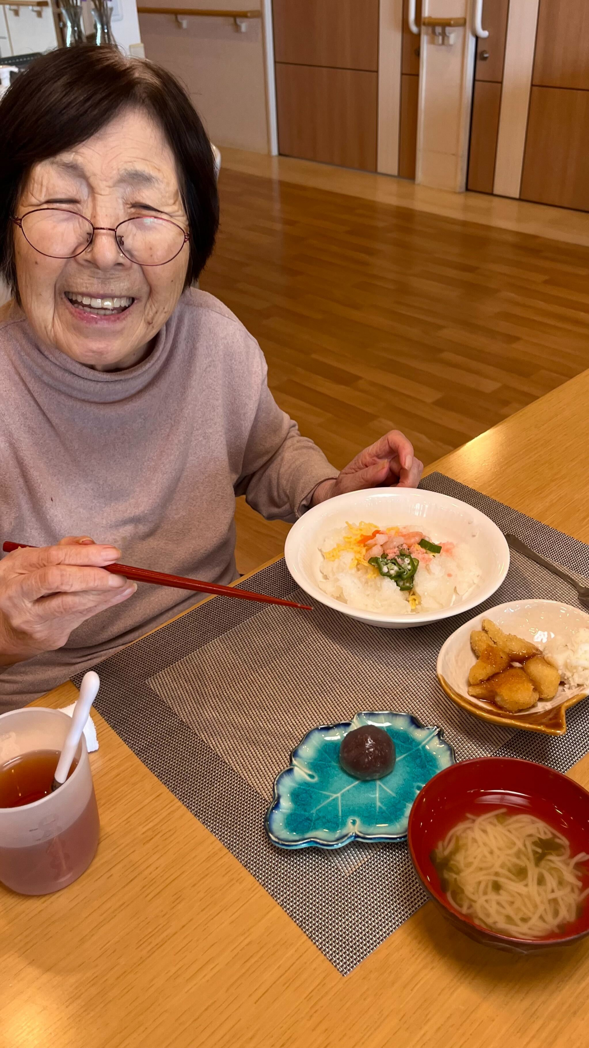 施設で生活をしているご利用者様にとって、毎日の食事は楽しみや生きがいになっています。その中でも行事食は、季節を感じたり普段食べることのできない食事を食べることができる特別な機会になっています。今後も、ご利用者様の生きる楽しみになるようなお食事を提供できるよう栄養士・調理員ともに努めてまいります!