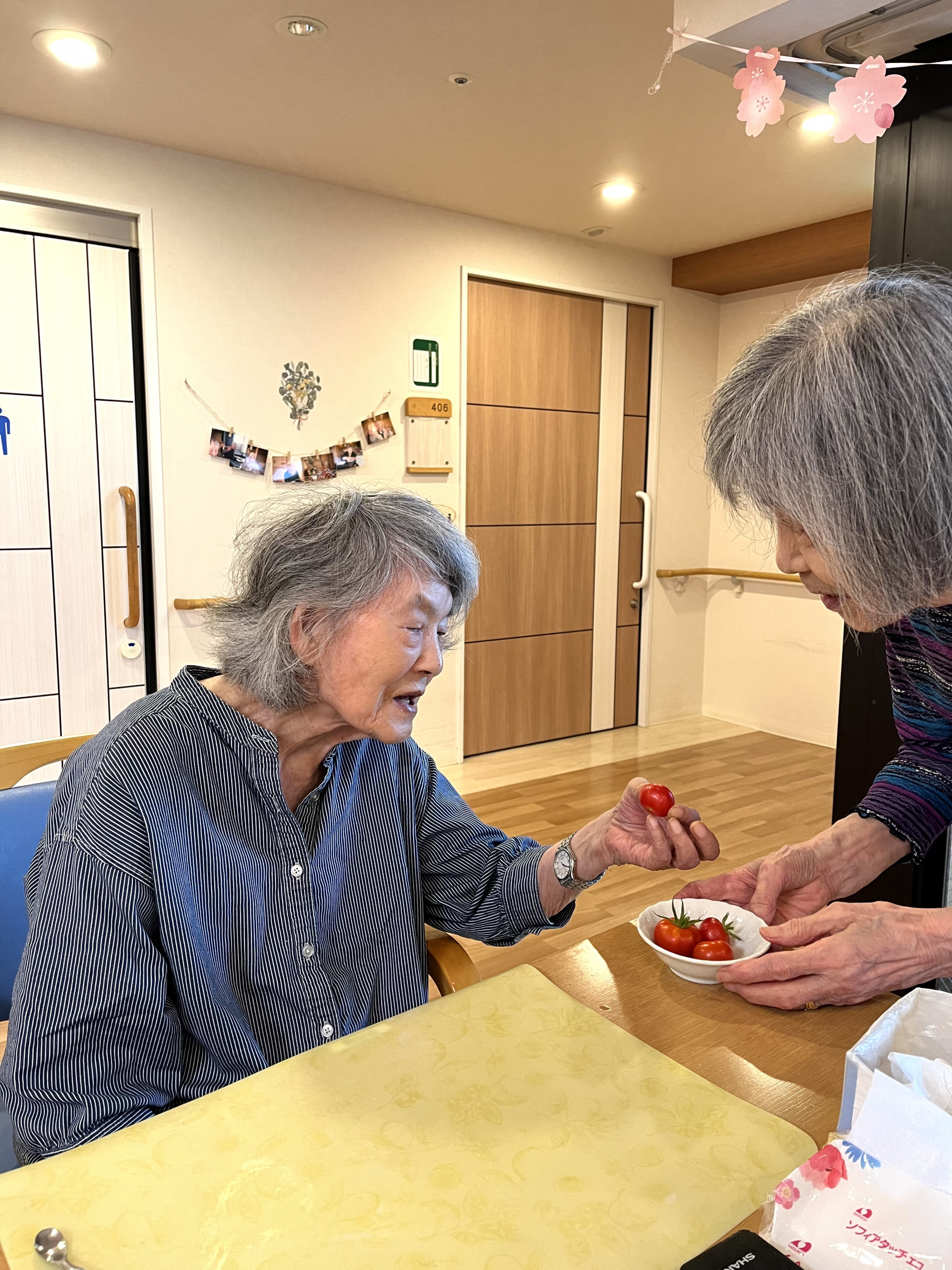 収穫したミニトマトを召し上がりましょう(*´ω`)