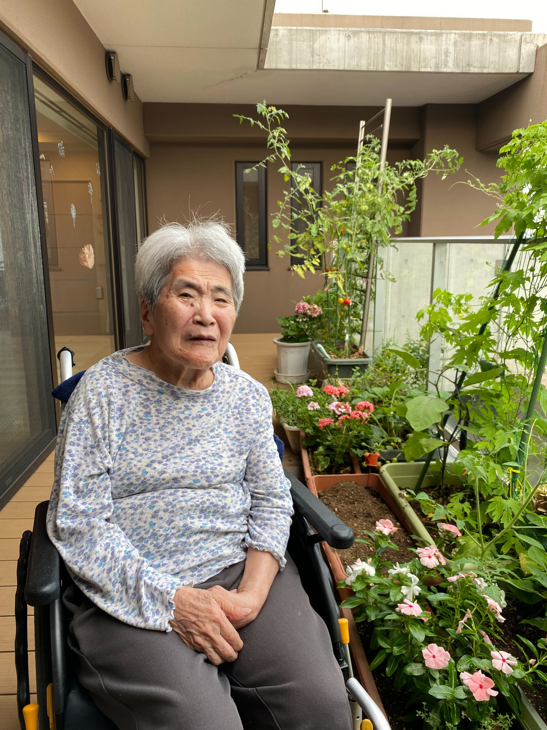 ベランダの花野菜たちに囲まれて、外気浴を楽しむ時間♪