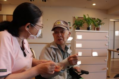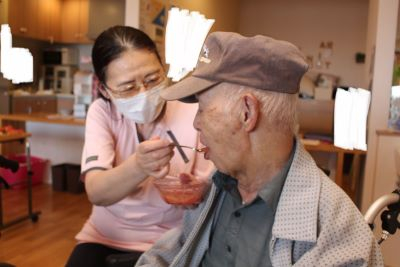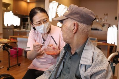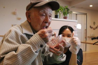 職員に見守られながら、フルーツゼリーを召し上がっていました。