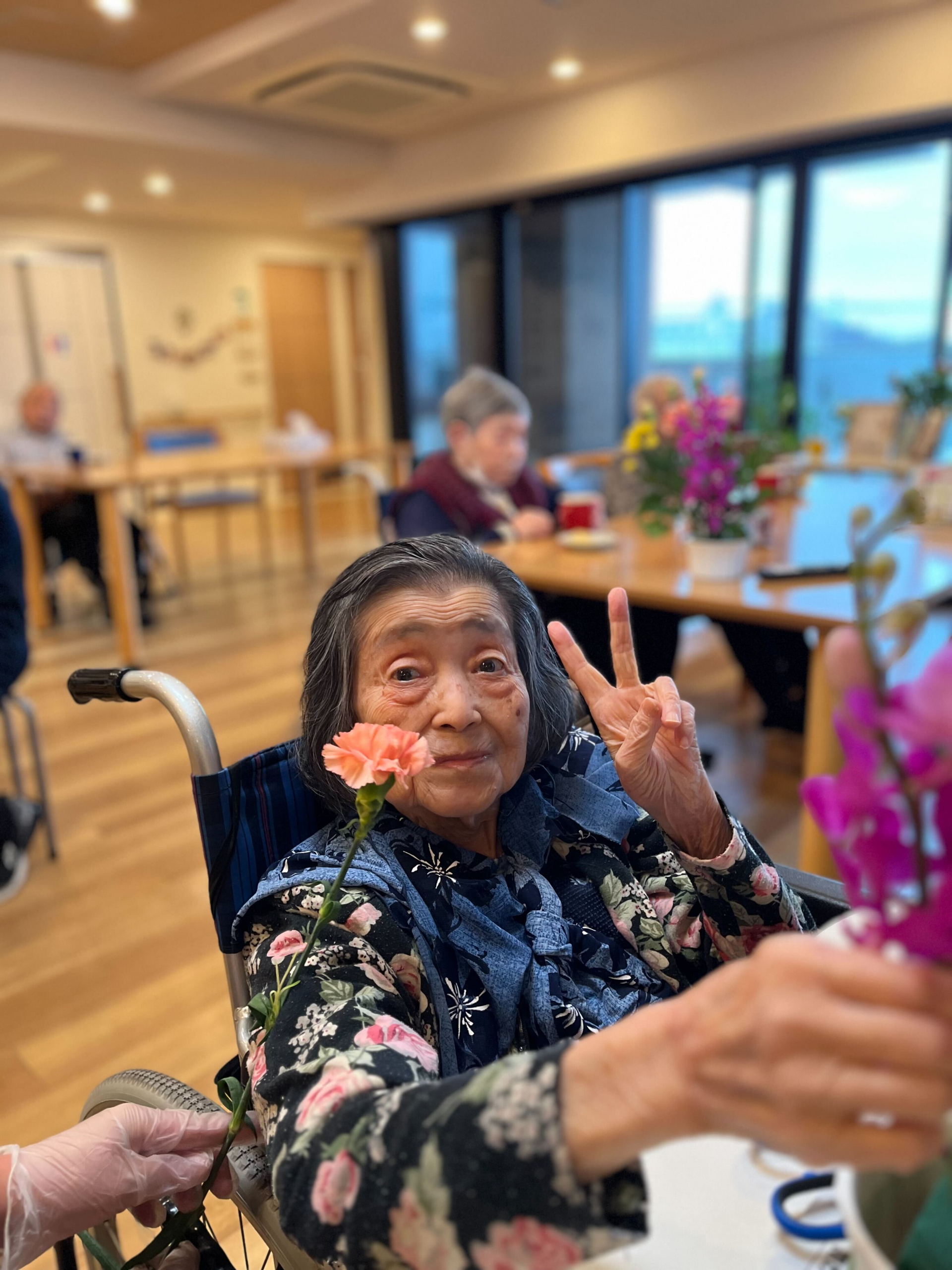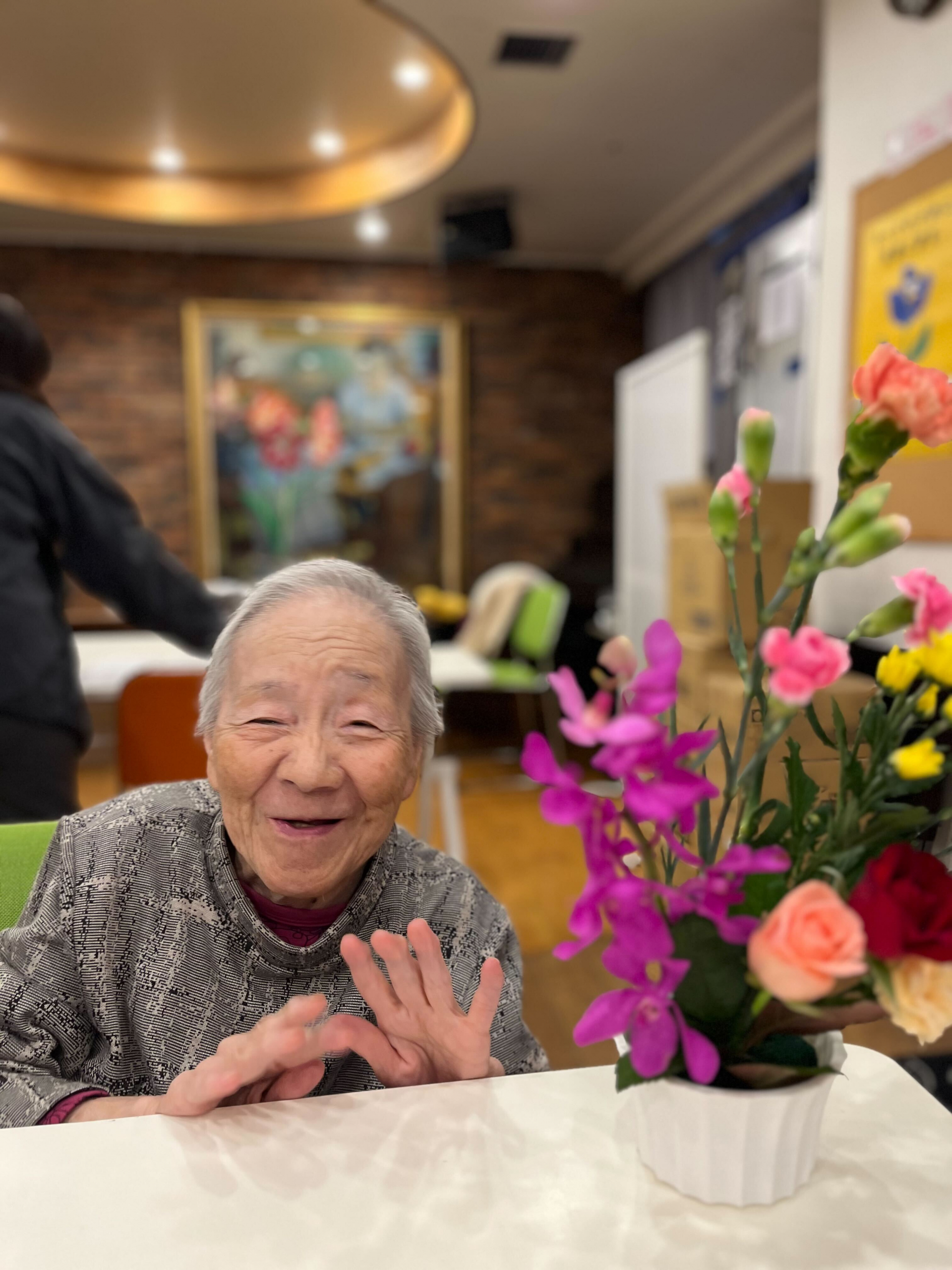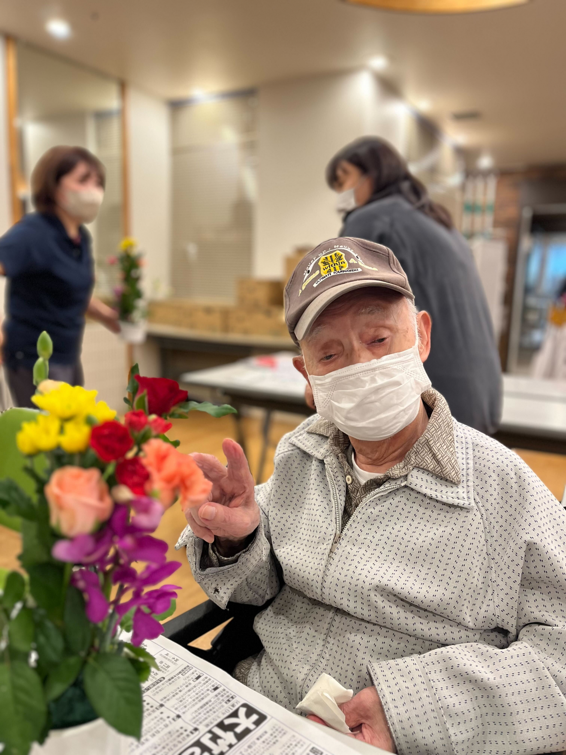 先日、皆様が1階へフラワーアレンジメントを参加に行きました(^^♪