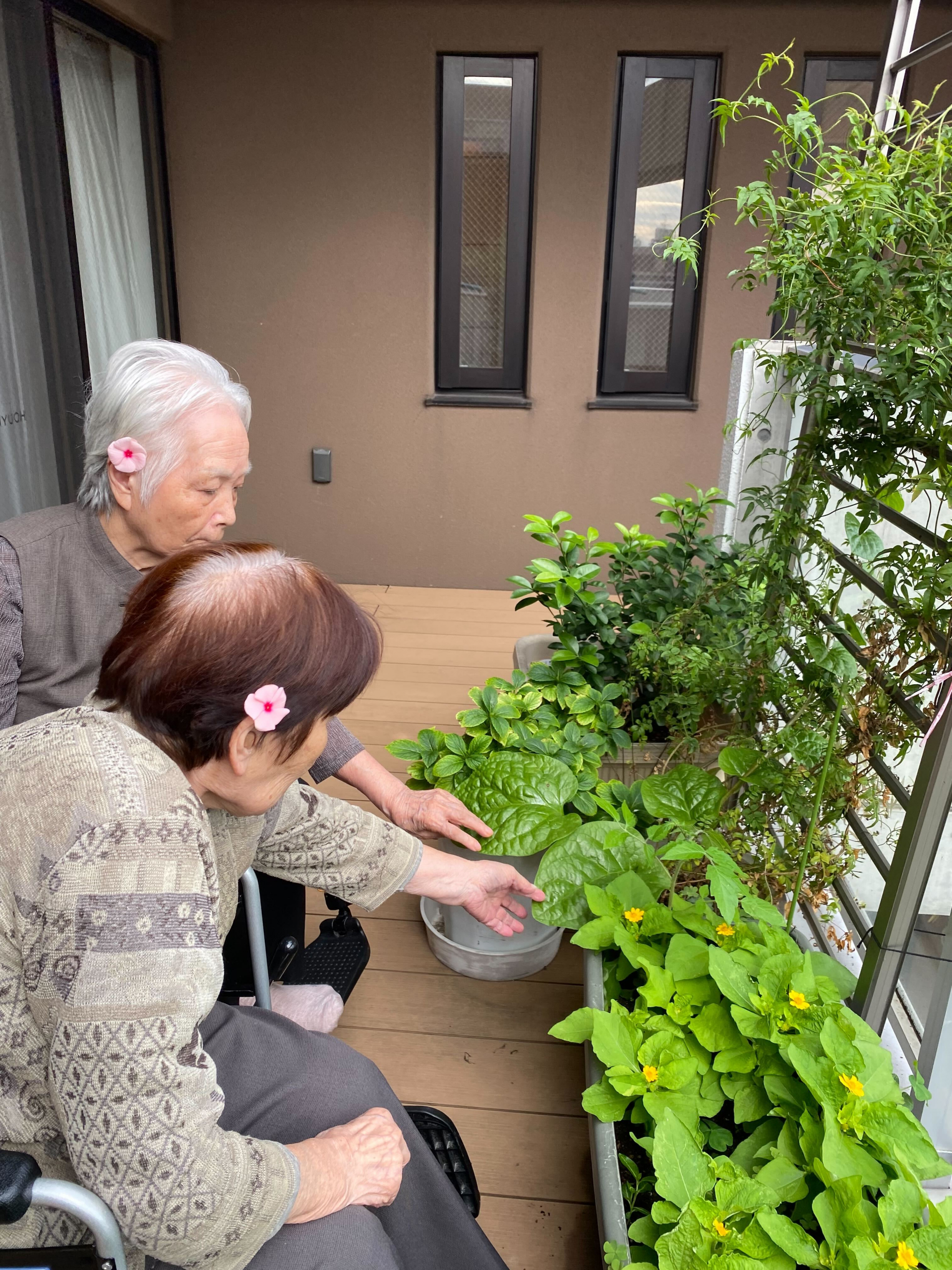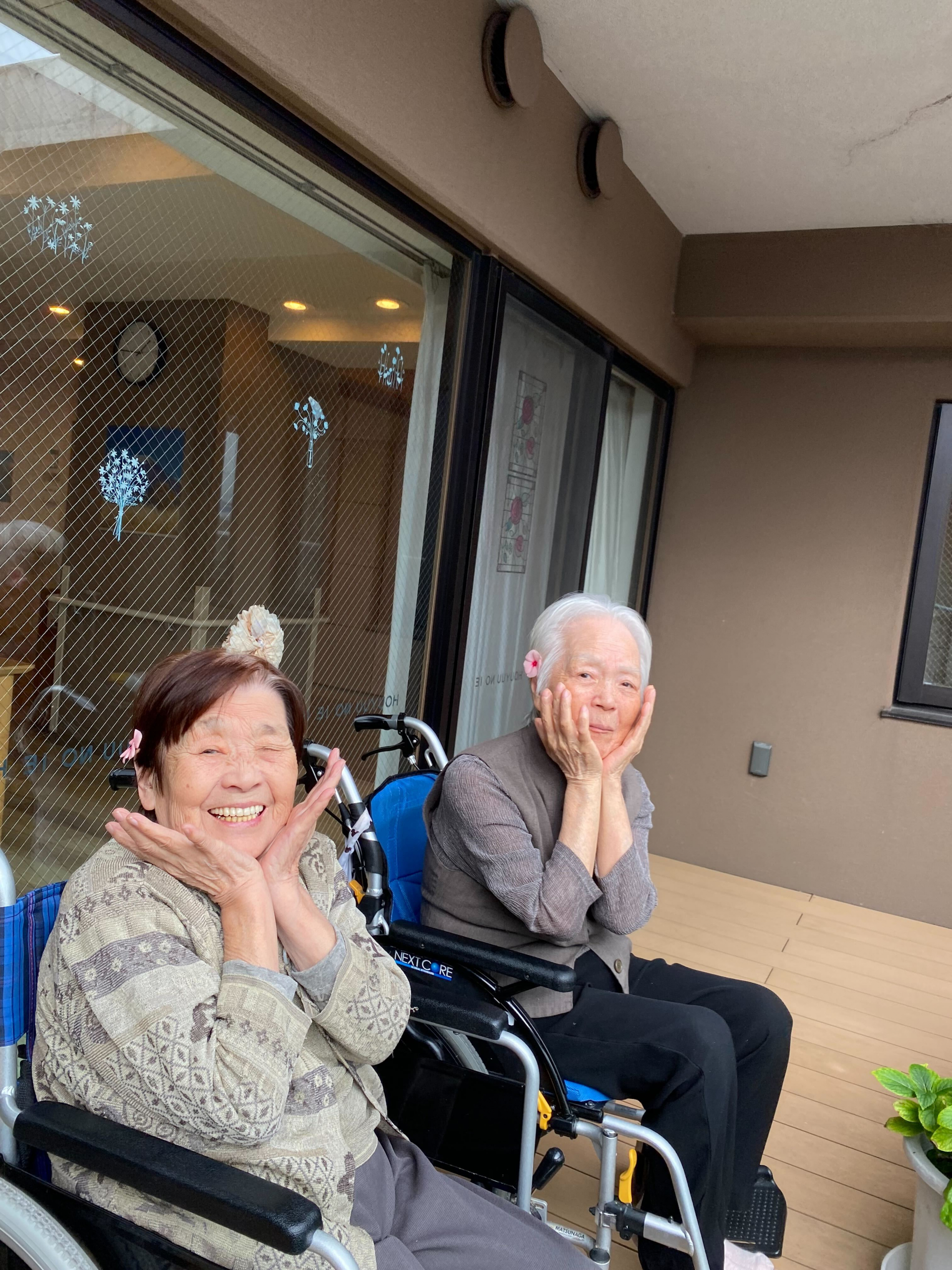 秋風にそよぐ髪と花飾り 心まで軽やかにベランダでのんびりと過ごす午後。秋の空気を感じながら、自然と会話も弾みます。