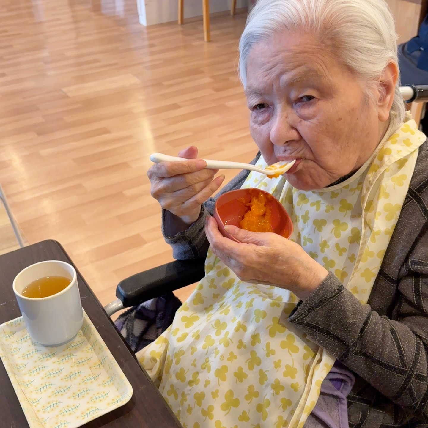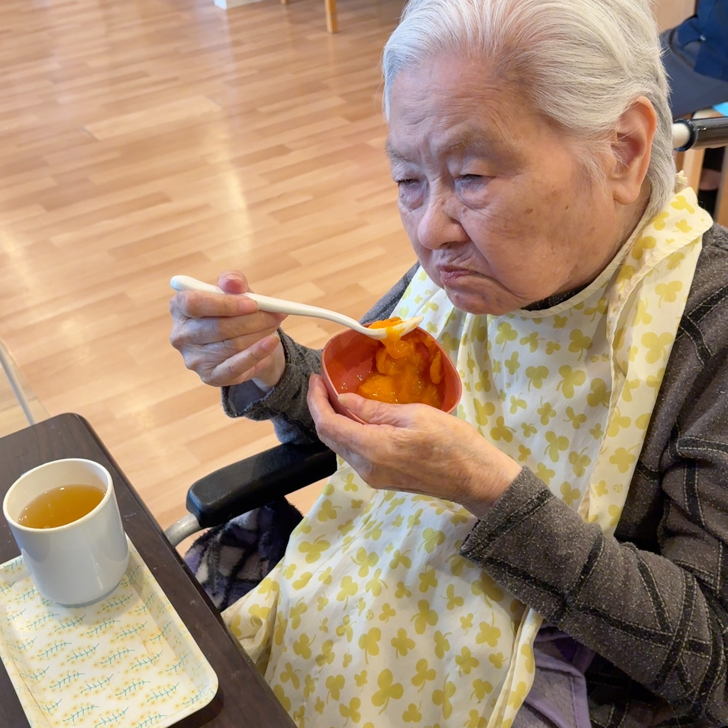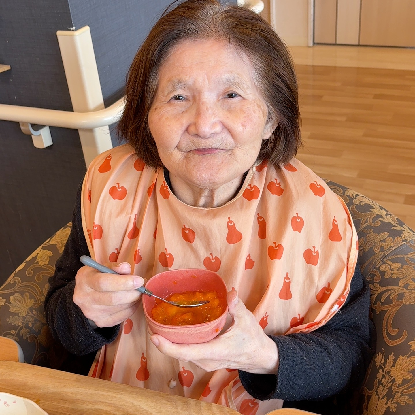 柿を嬉しそうに食べるご利用者様