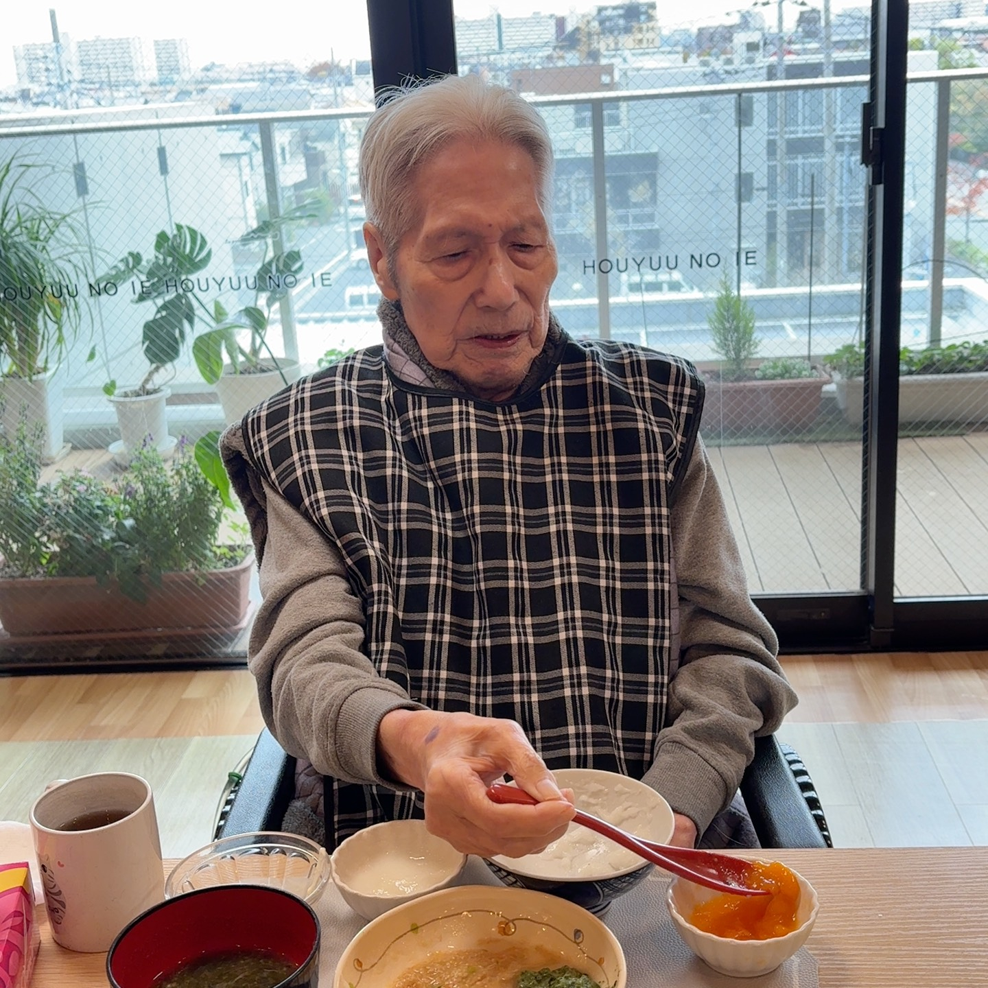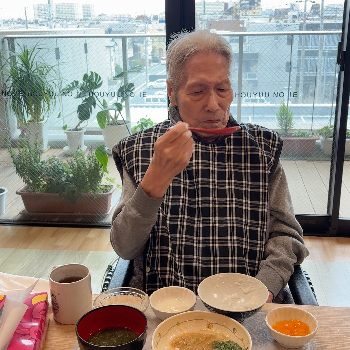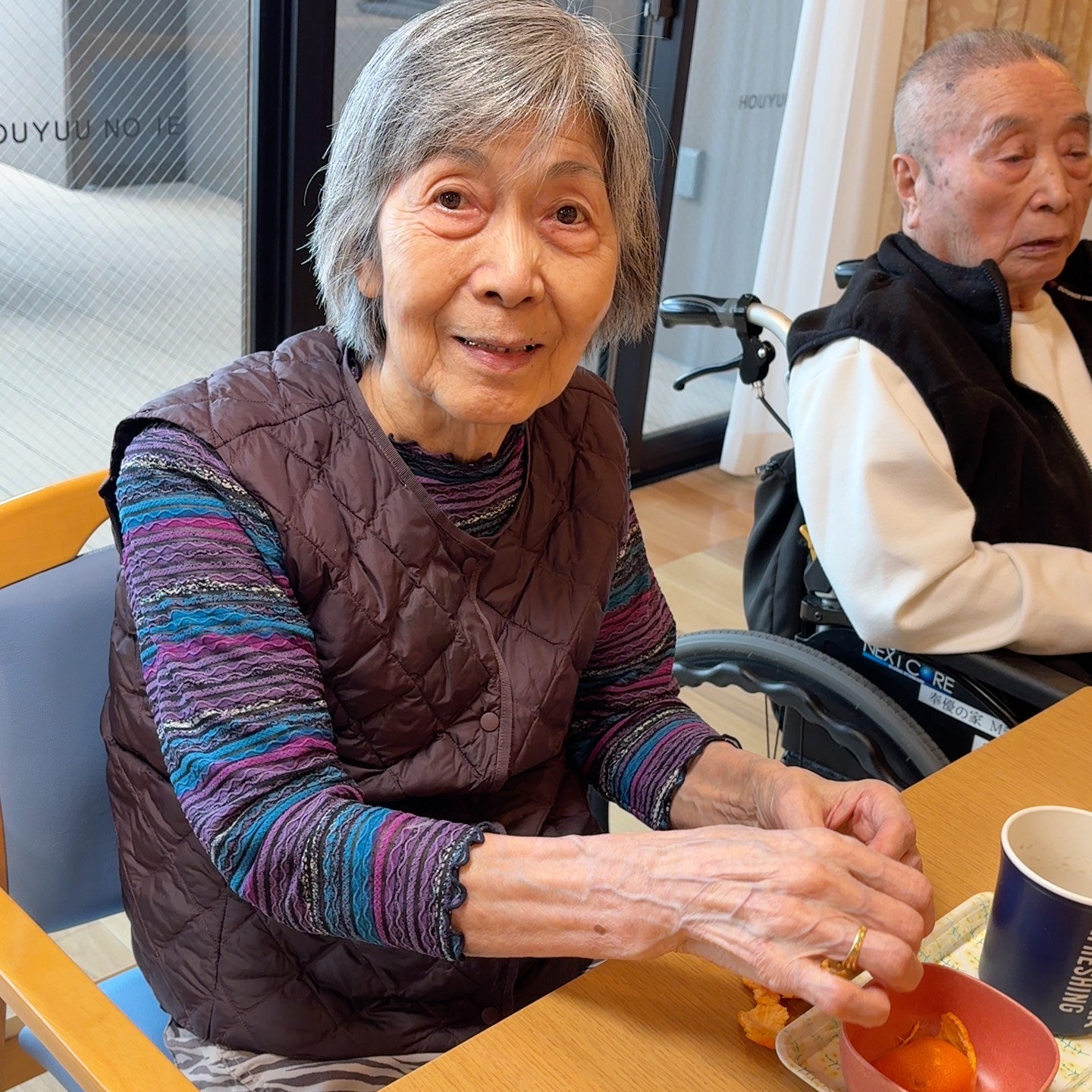 柿を嬉しそうに食べるご利用者様