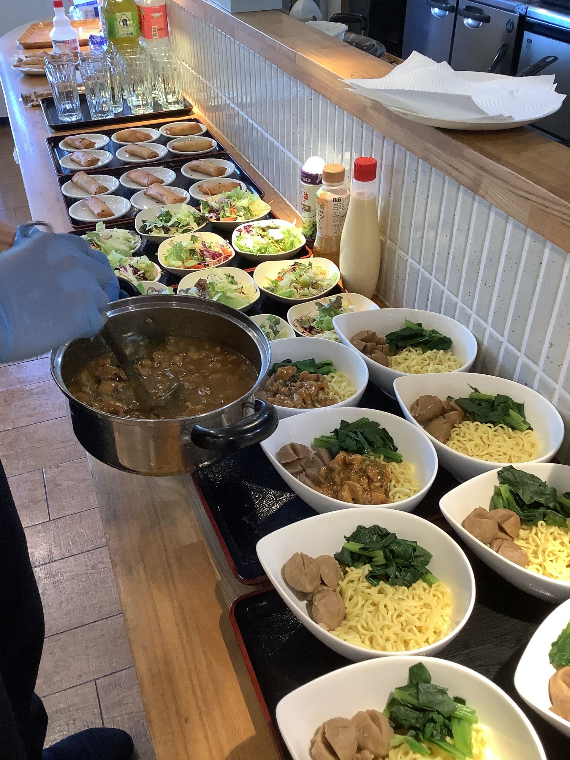 インドネシアの先輩が一生懸命作った「ミーアヤム」という郷土料理が提供されました。日本でいう鶏そばのようなものだとか。