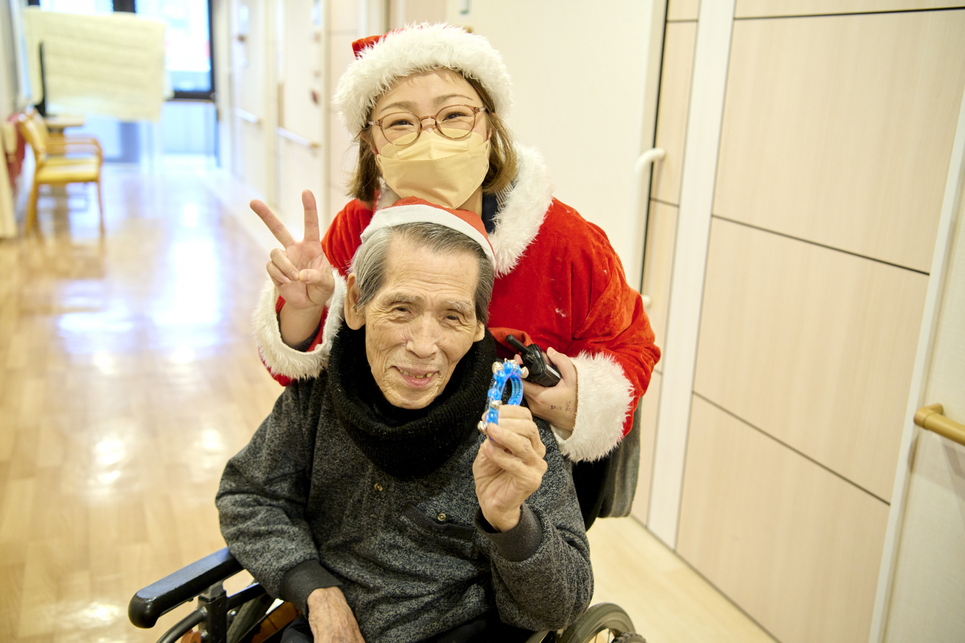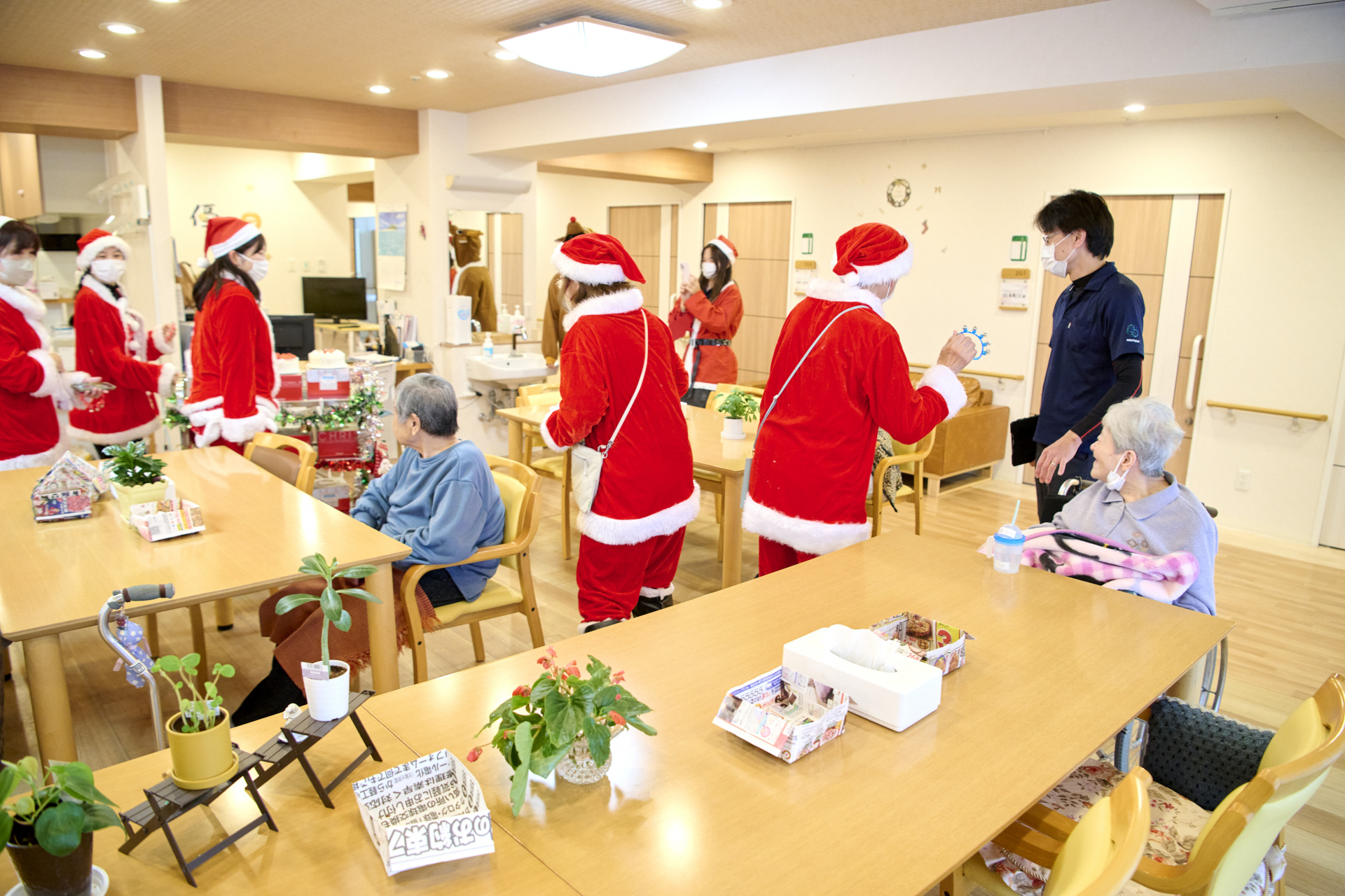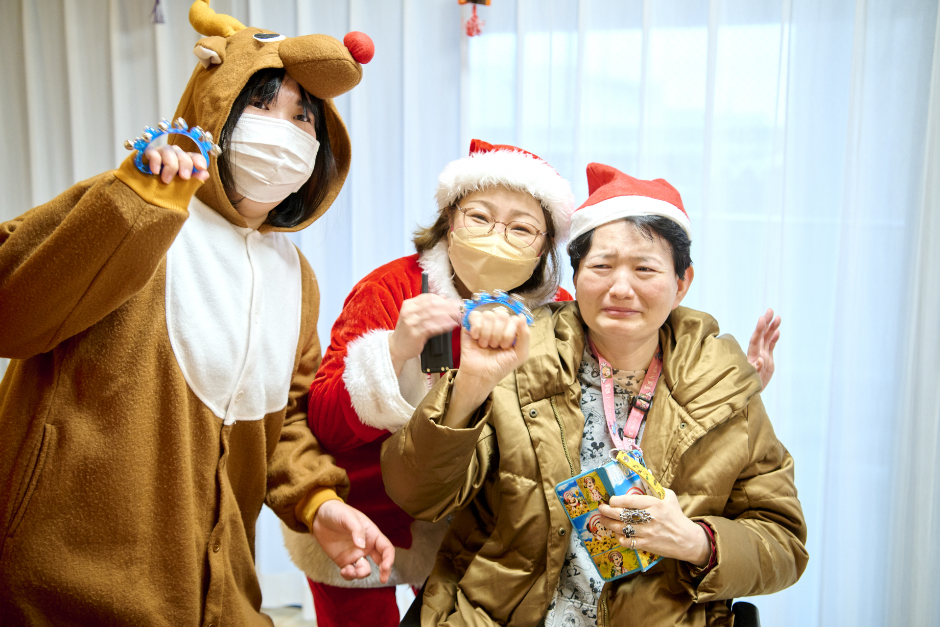 少しでも皆さんに「クリスマス」を楽しんでいただきたいと思い、一生懸命に企画と準備を行いました。喜んでくれるかな?と最初は不安もありましたが、きっとこの笑顔が答えなんだと思います。そしてご覧ください、職員のこの笑顔。誰よりも楽しんでいたのは私をはじめとする職員かもしれません(笑)