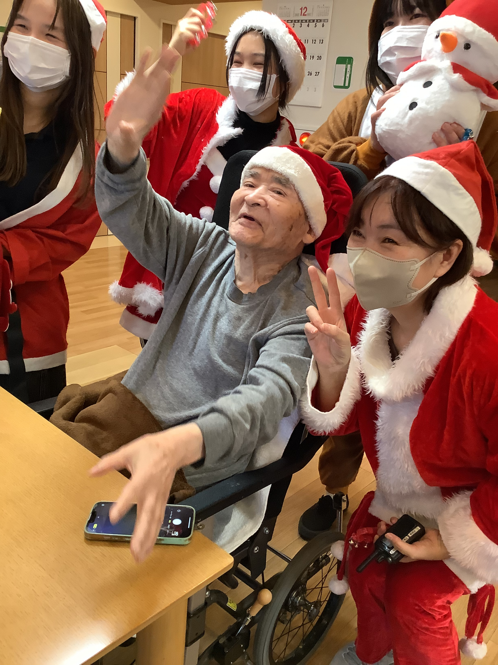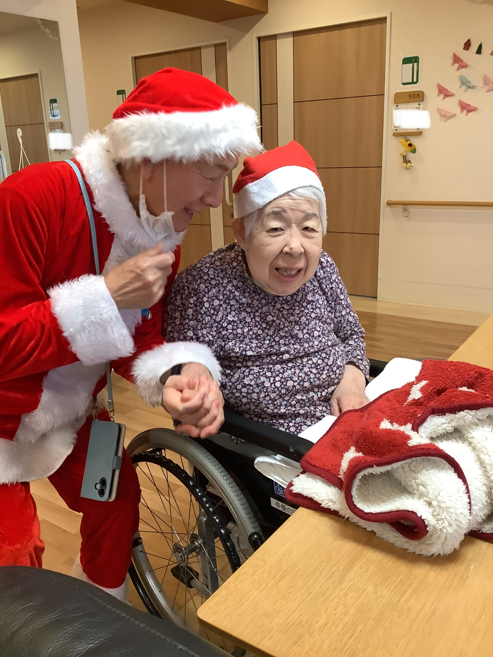 突然のサンタの登場に、利用者の皆さまは笑顔になり、