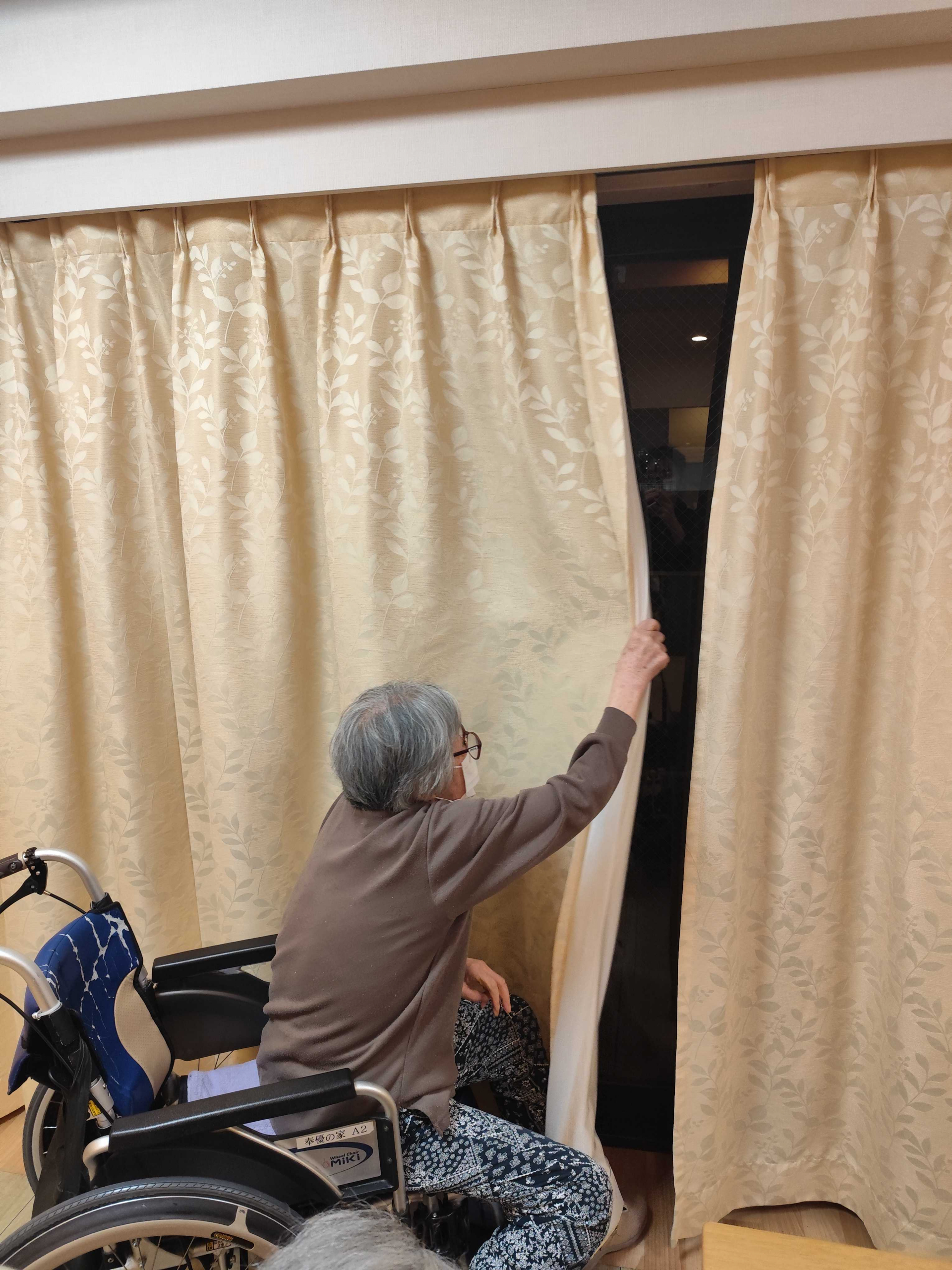 タオルをたたんだり、カーテンを閉めたりします。。こうした小さなお手伝いが集まって、穏やかな時間が静かに流れていきます。