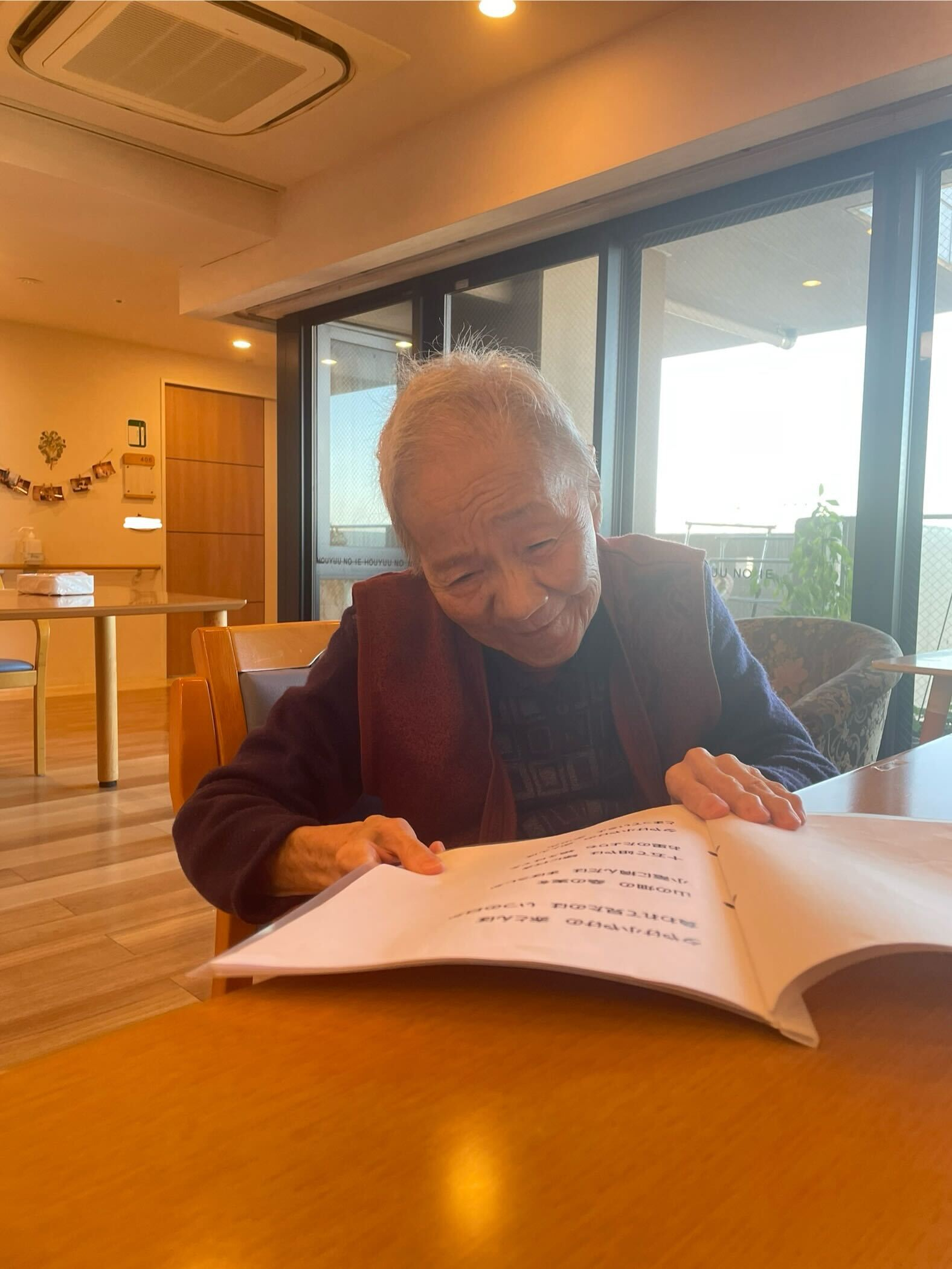 三線の演奏を楽しまれています。 音に集中しながら、落ち着いた時間を過ごされています。