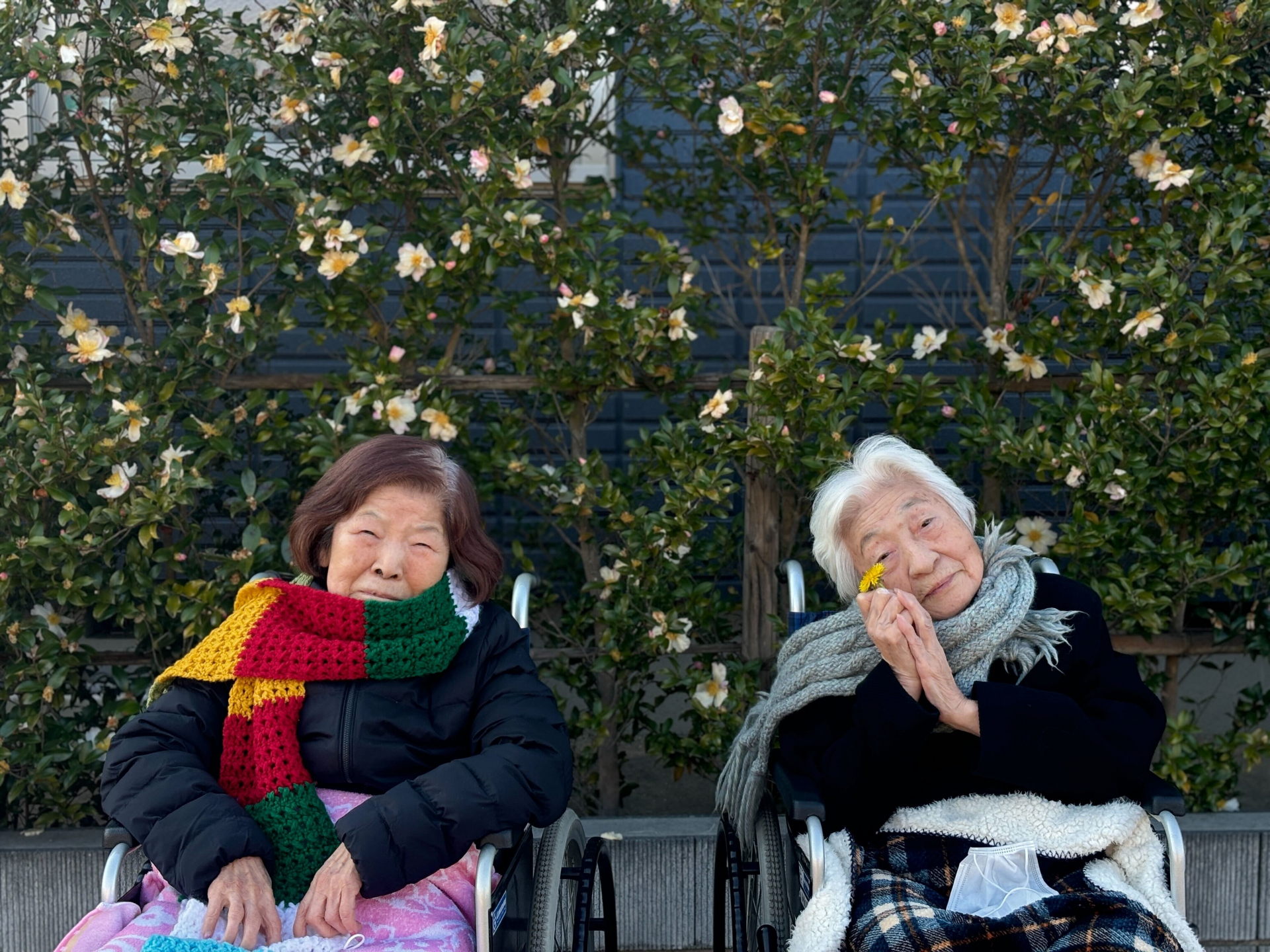 「ほら、あの花は美しいな~」一緒に写真を撮りましょう♪1,2,3パシャリ😊