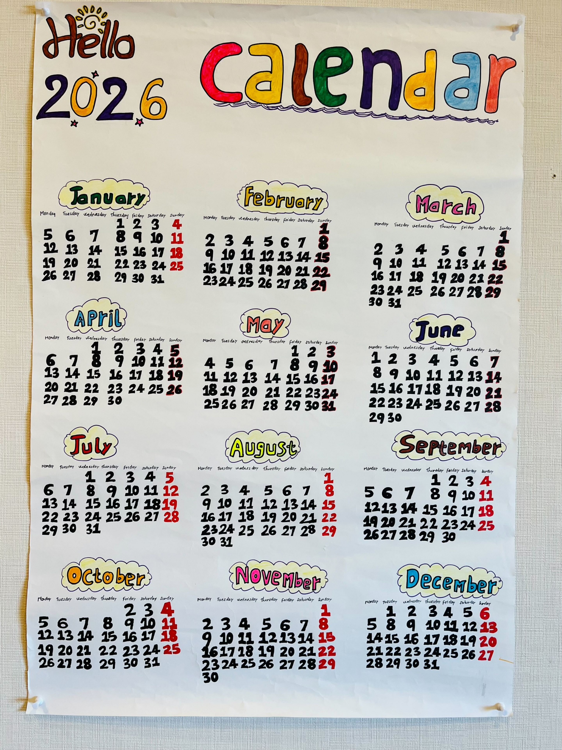ご利用者様と一緒に2026年のカレンダーを作りました(^_-)-☆
