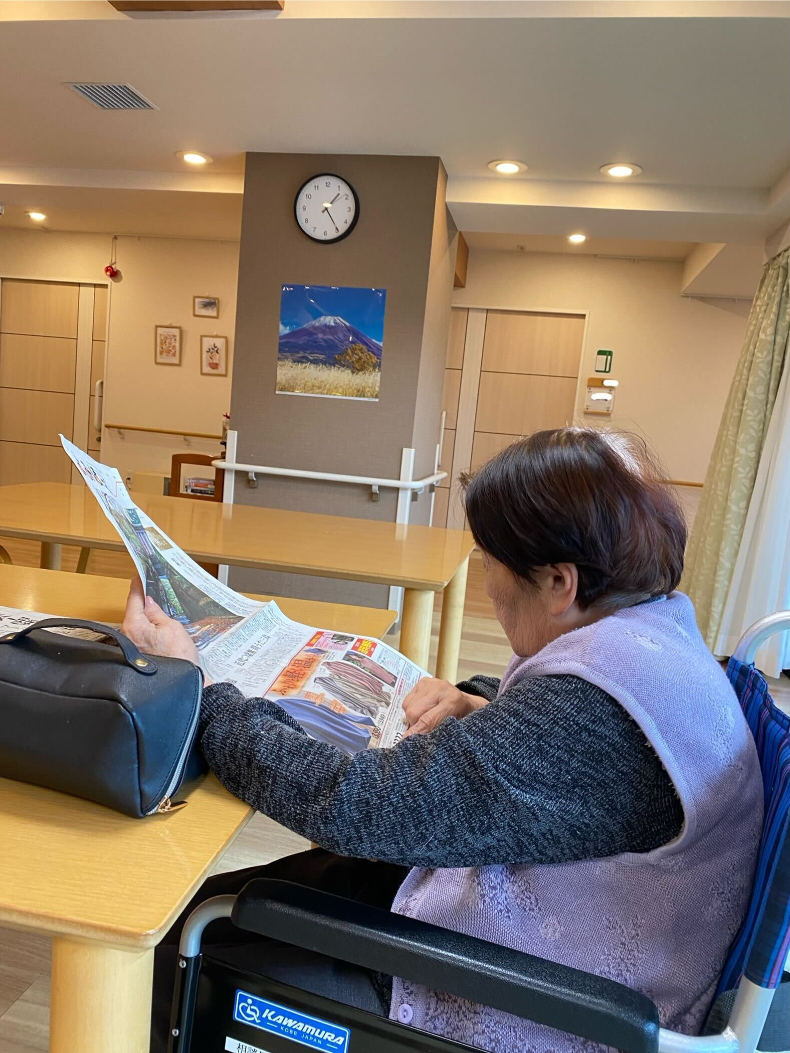 ゆったりと新聞をめくりながら、静かな朝を過ごされました。お気に入りのページを見つけると、じっと見つめられ、穏やかな笑顔も見られました。まるで時がゆっくり流れているような、落ち着いた時間でした。