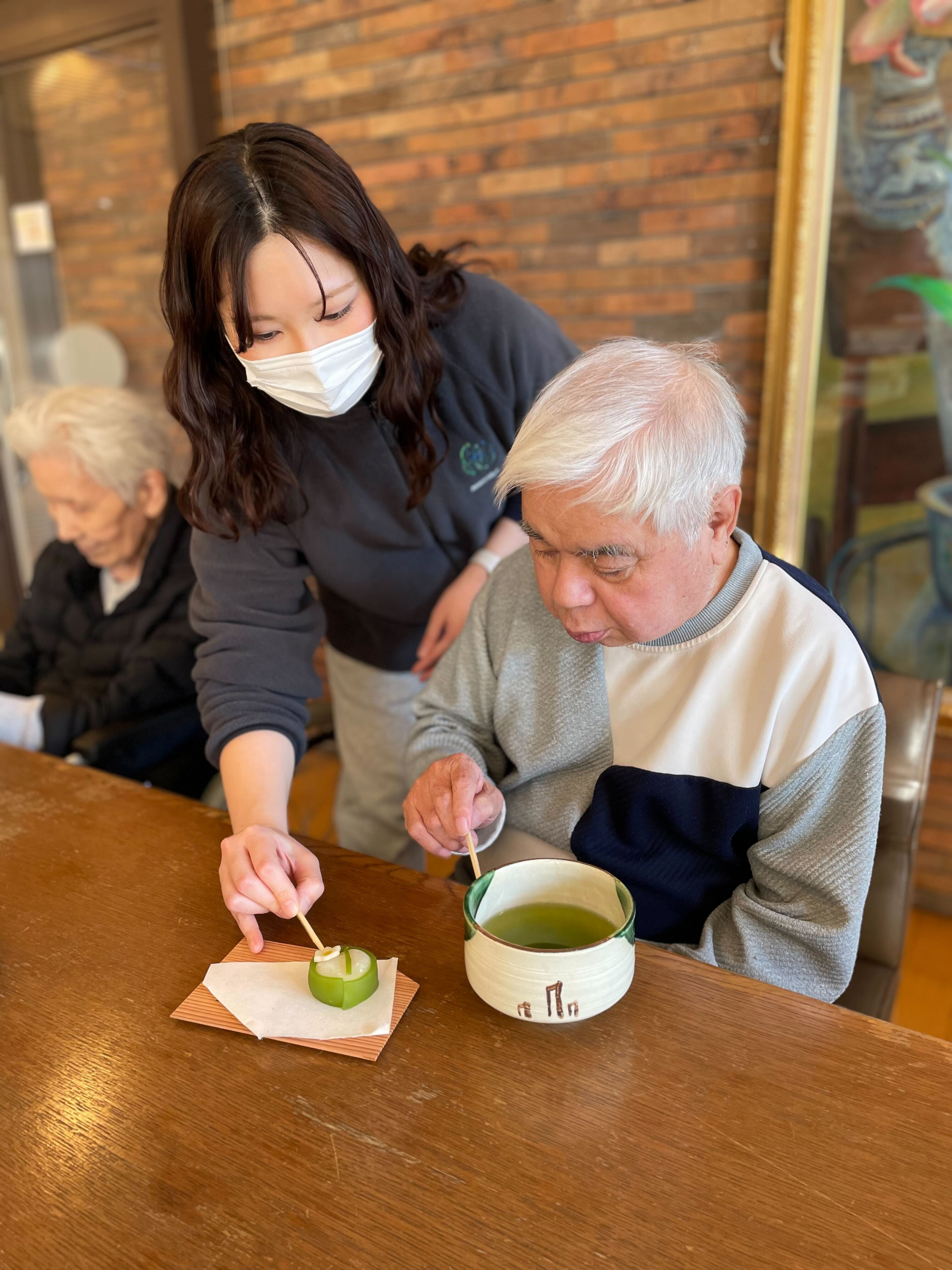 1月のテーマは「和」と題し、和菓子とお抹茶を用意しご利用者様には実際にご自身でお茶を点てていただきました。