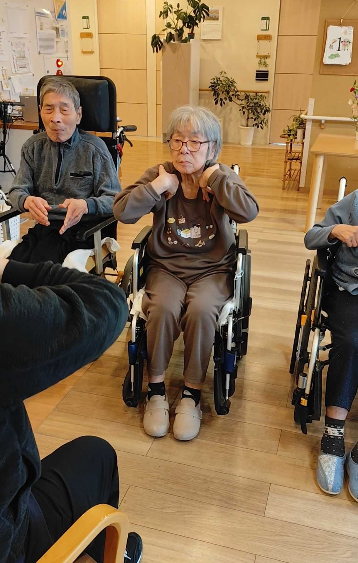 理学療法士さんと一緒に体操をしています。