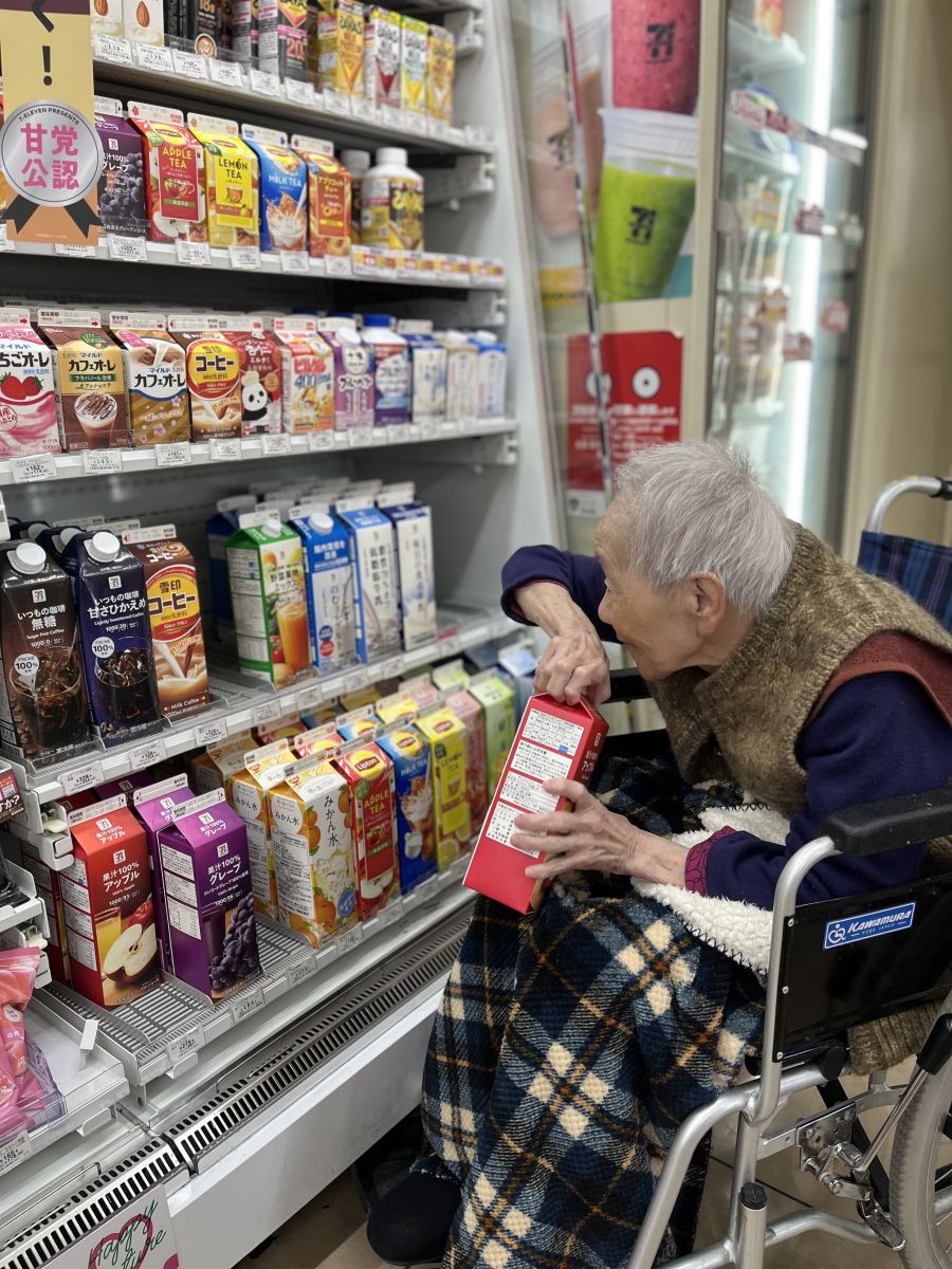 天気が良かったので、一緒に散歩に連れて行きました。ついでに本人の希望によりコンビニにも寄りました(^_-)-☆