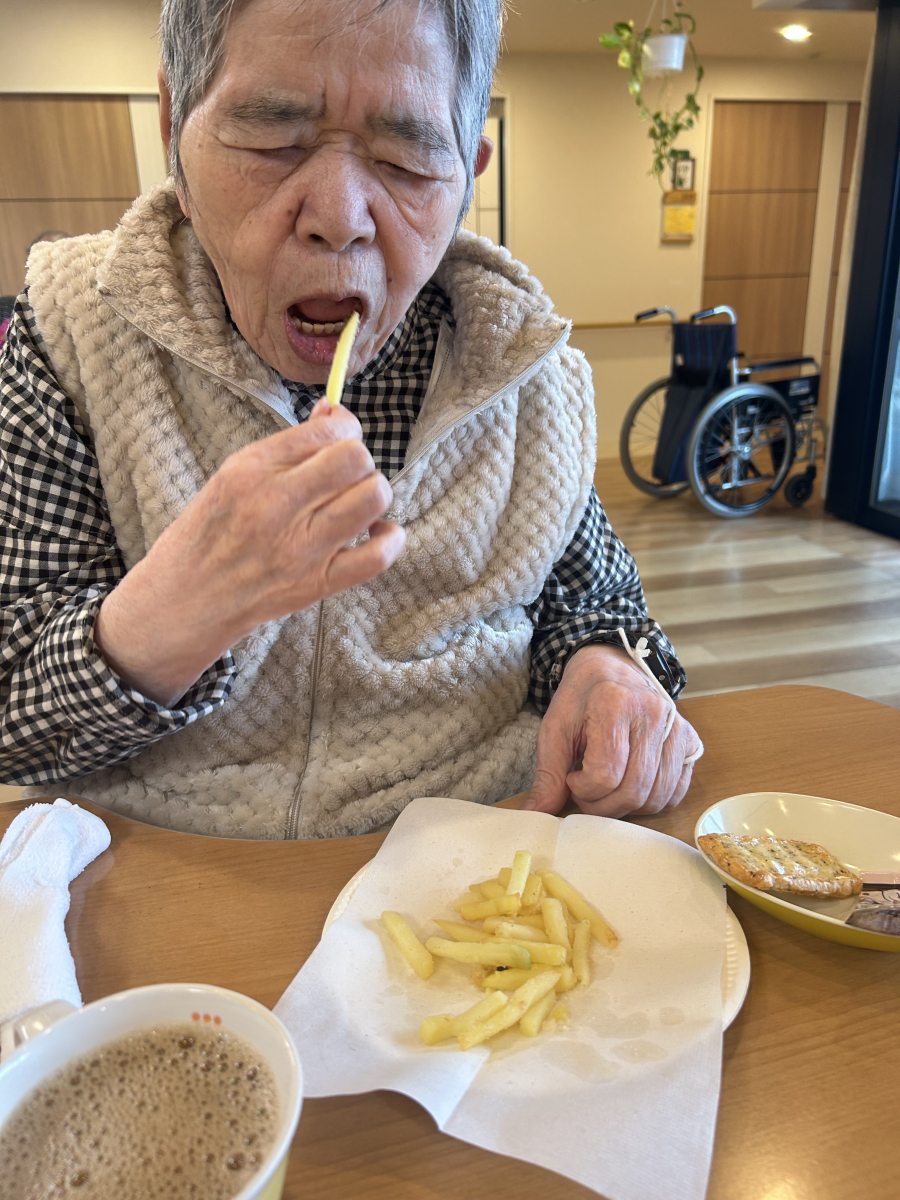 いつもおやつは、おせんべいが多く温かい揚げたてのポテトをお出ししたところ・・・