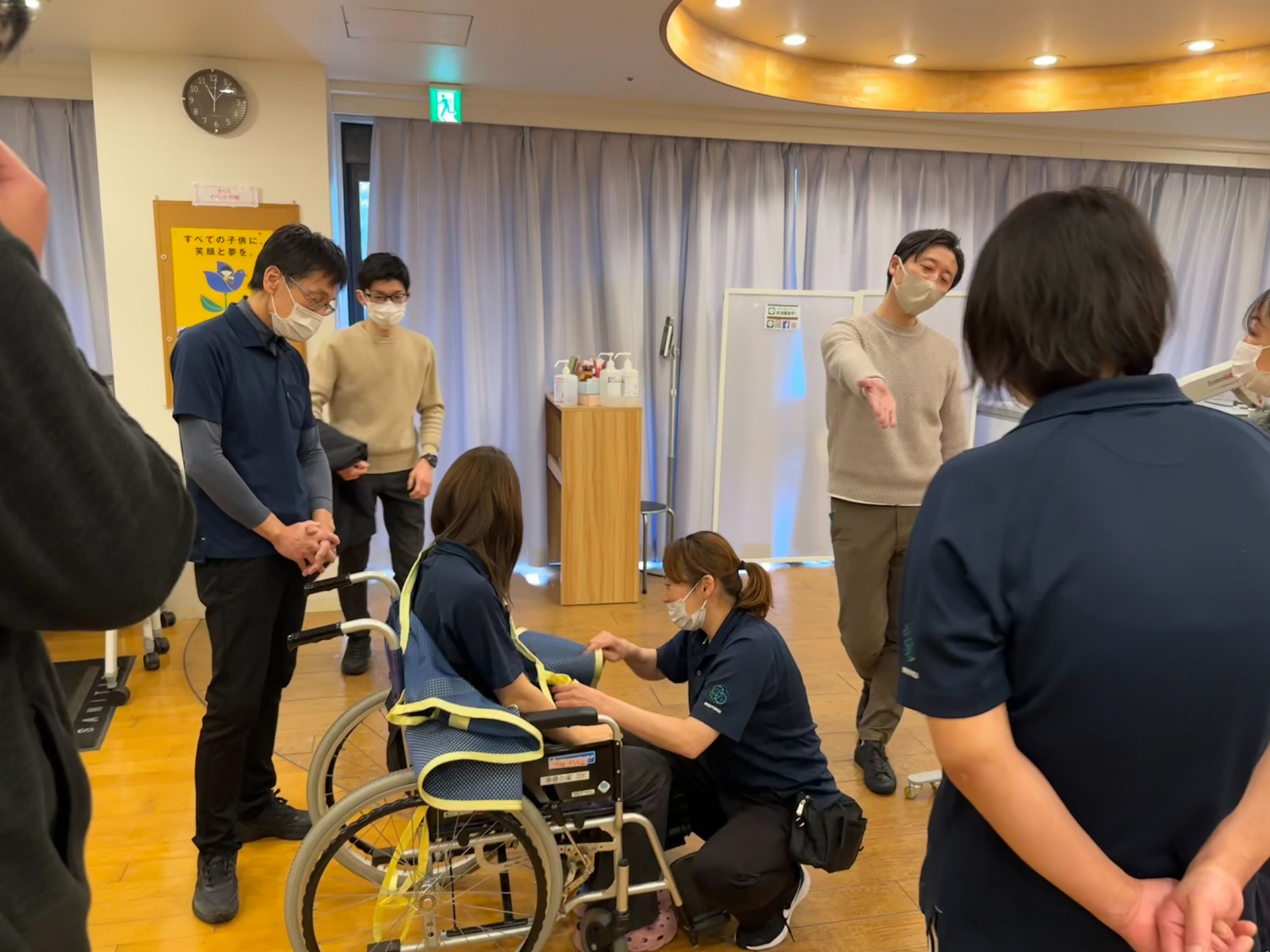 現場の職員も参加し、実際の機器を使いながら移乗の流れや安全に使用するためのポイントをたくさん学びました。実際にリフトを体験し、利用者様の気持ちを理解する良い機会となりました。